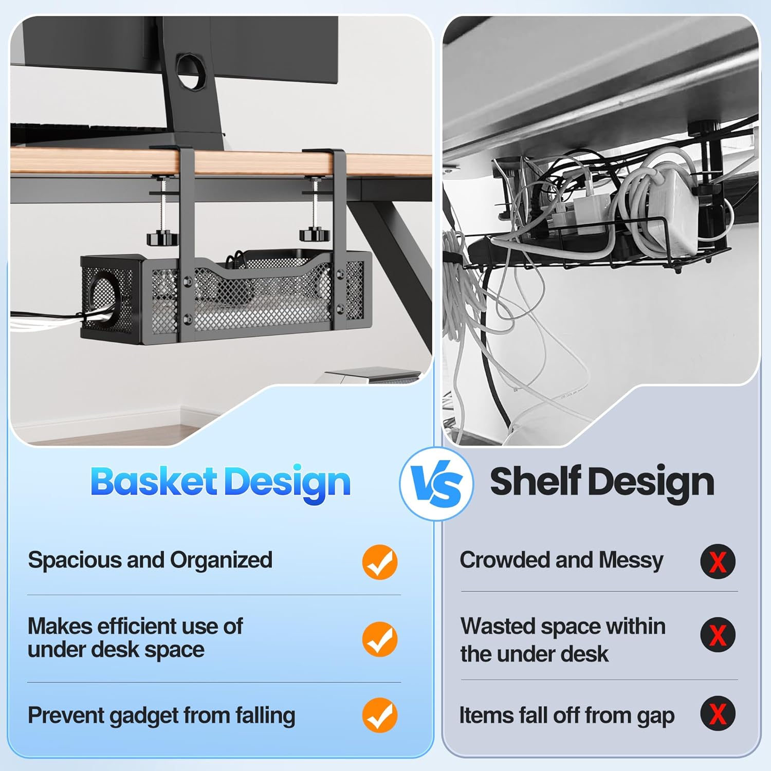 - ๐๐จ ๐๐๐๐ ๐ญ๐จ ๐๐ซ๐ข๐ฅ๐ฅ๐ข๐ง๐ ๐๐จ๐ฅ๐๐ฌ - Instead of damaging to your desk, our under desk cable management tray can be hanged directly to desk frames and change its position easily as you like, unlike others screw installation. It excellent to install a clamp on any wood, glass, or any material on your desk.