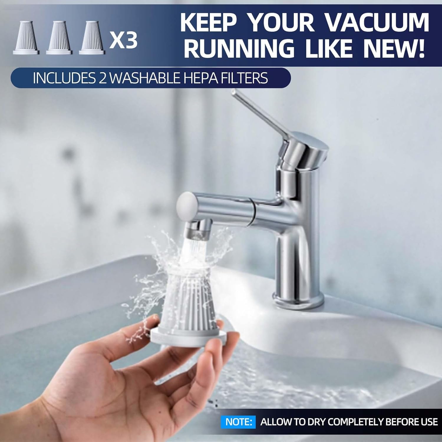 - Enhanced Filtration System: 3 rewashable filters for effective dust filtration, a sustainable solution that offers your mini vacuum remains effective and powerful over time