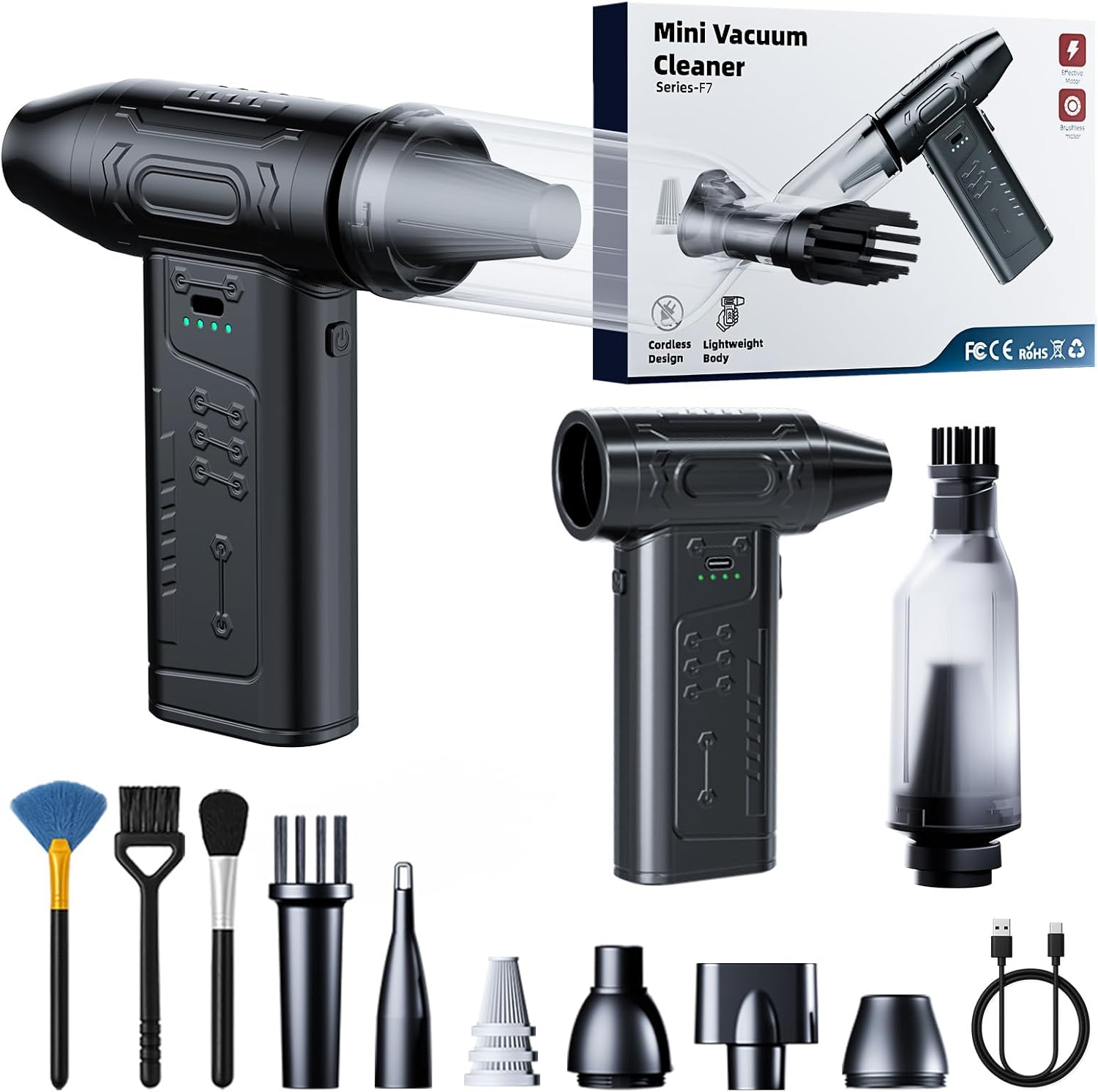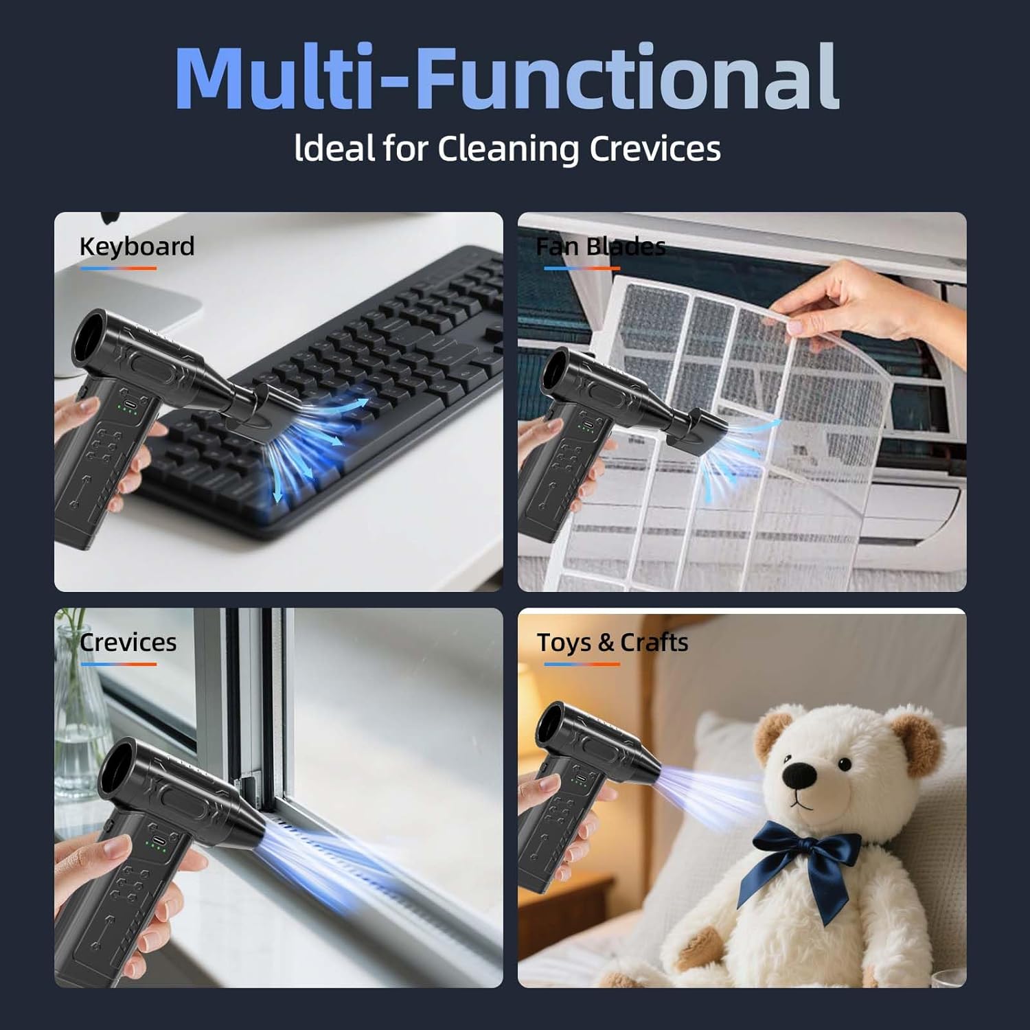 - 2-in-1 Air Duster and Mini Vacuum: Say goodbye to dust and debris with this electric air duster; doubles as a mini vacuum for cleaning dust from computer keyboards or other surfaces in the car, home or office