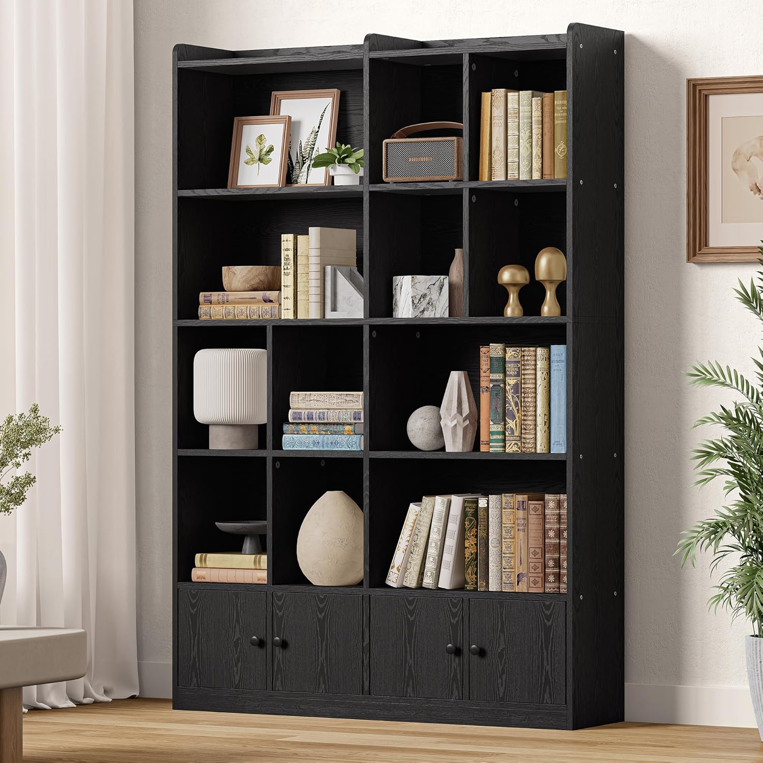 - Equipped with Cabinet Doors: The bookcase with doors design provides a clean and concealed storage space, providing a place for your daily necessities or miscellaneous items, adding elegance to your room