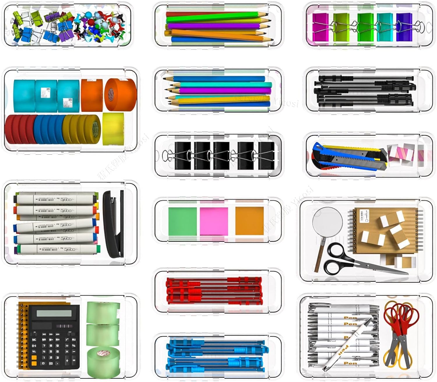 - Clear and Easy to Use: these desk drawer organizer boxes with fully transparent construction allows you to see contents at a glance, easy to find what you need; Just pull it to the length you need,and put in your things,convenient and time saving;Otherwise,the transparent plastic storage boxes have a simple and sleek look,suitable for any living spaces