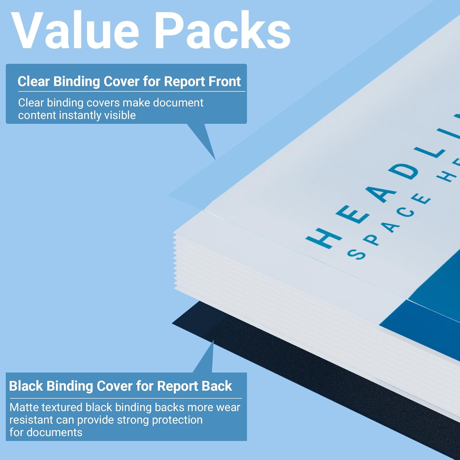 - Professional binding covers and backs kit design for 8.5 x 11 inches letter size paper, includes 100 sheets clear binding covers (8 mil) and 100 sheets black sand-textured binding covers (12 mil) for documents protection and polished presentations