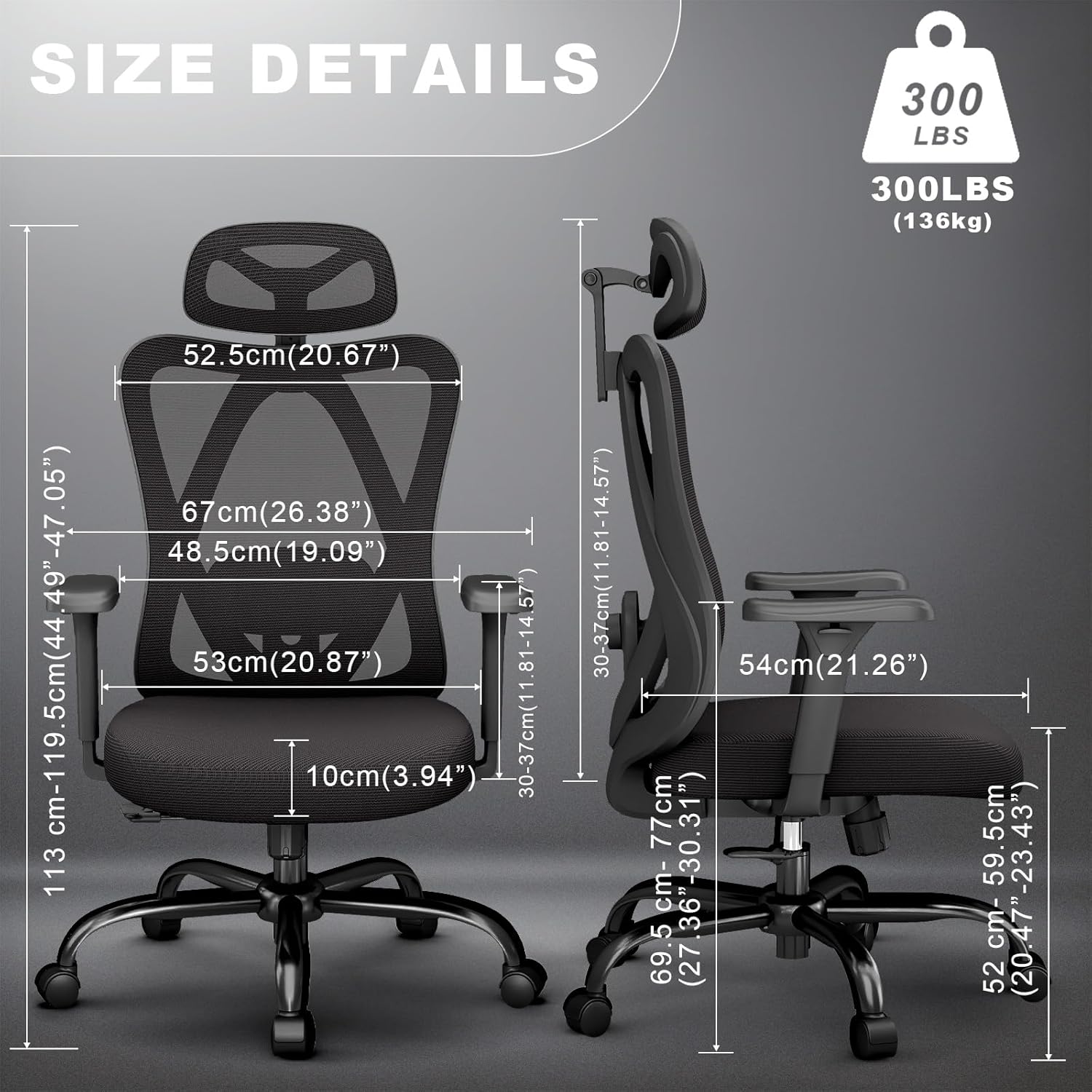 - STURDY and DURABLE: The office chair features a high-quality metal base with a 5 point star design for enhanced stability. Equipped with an SGS-certified pneumatic lift mechanism, it supports a maximum weight capacity of 300 lbs