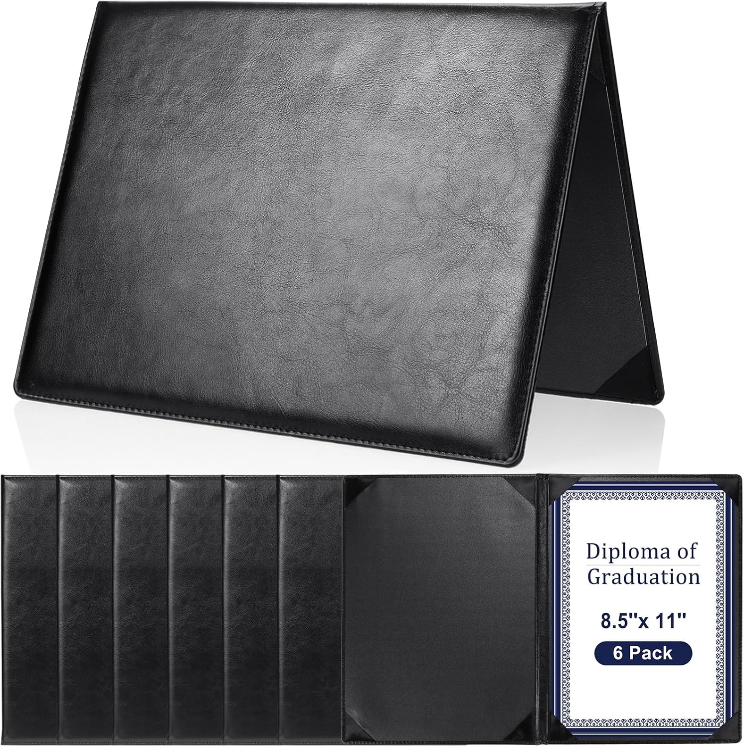 Tenare 6 Pcs Leather Certificate Holder 8.5 x 11 Inch PU Black Red Blue Purple Phd Bachelor Master Diploma Cover Professional Award Folder for Official Graduation Competition Contest Charity (Black)