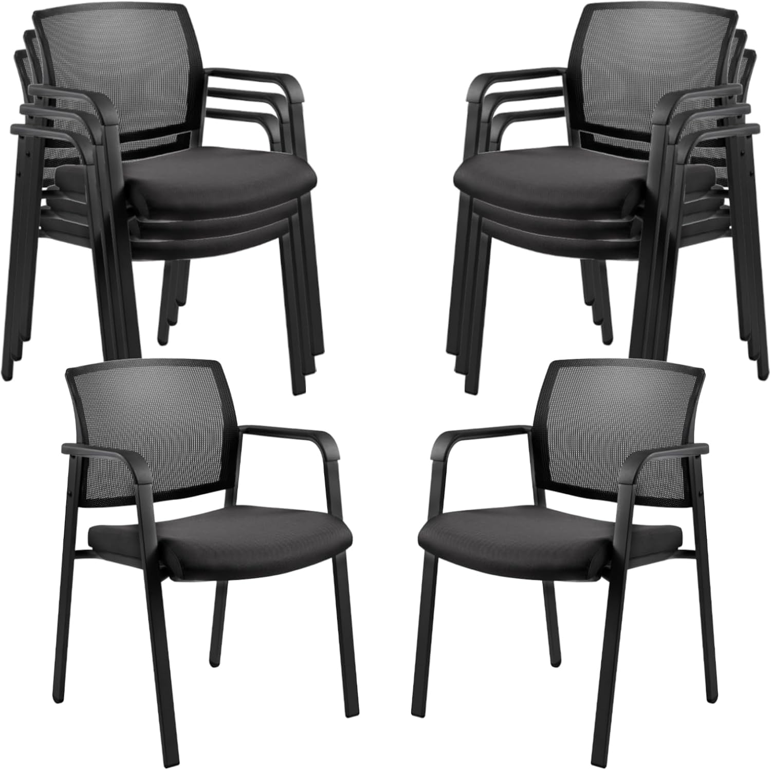 CLATINA Mesh Back Stacking Arm Chairs with Upholstered Fabric Seat and Ergonomic Lumbar Support for Office School Church Guest Reception Black 8 Pack Set New Version