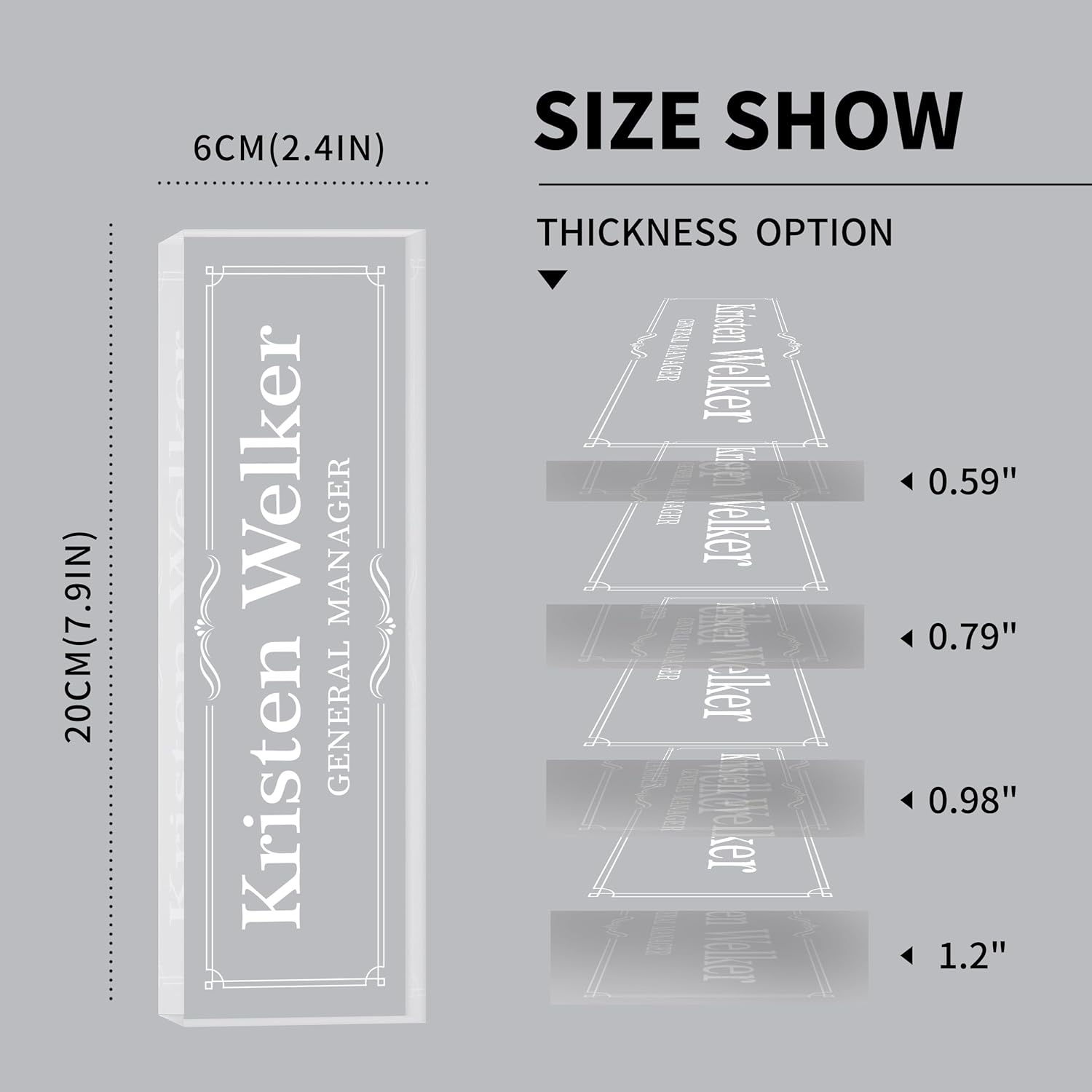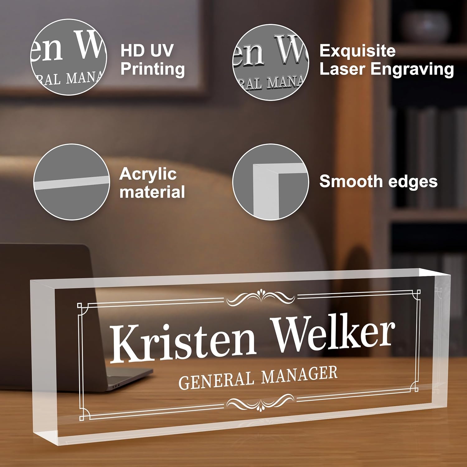 - 【Premium Acrylic Materials】:We use high-quality transparent environmentally friendly acrylic blocks to make custom name plates, and have two production processes, advanced HD printing technology with super strong adhesives, and fine laser engraving. The content of the name plate is clearly visible and will never fall off. The acrylic name plate is durable and can be used as a permanent desktop decoration.