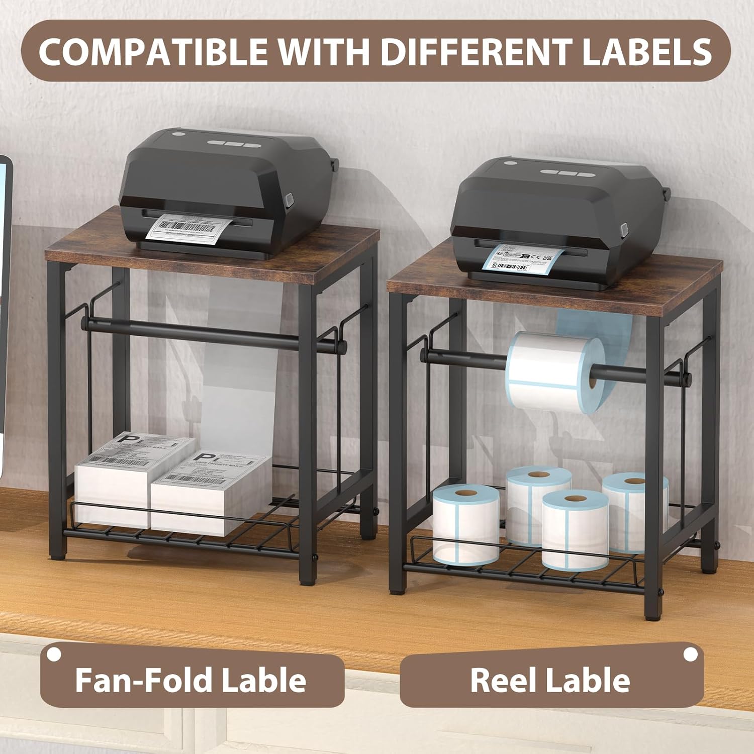 - Versatile Label Holders: This versatile label holder stand is designed to efficiently organize your workspace. Crafted from durable metal frame and wood construction for long-lasting use, this label holder includes a convenient storage basket for all your label paper needs. Say goodbye to clutter and hello to organization with this practical solution.