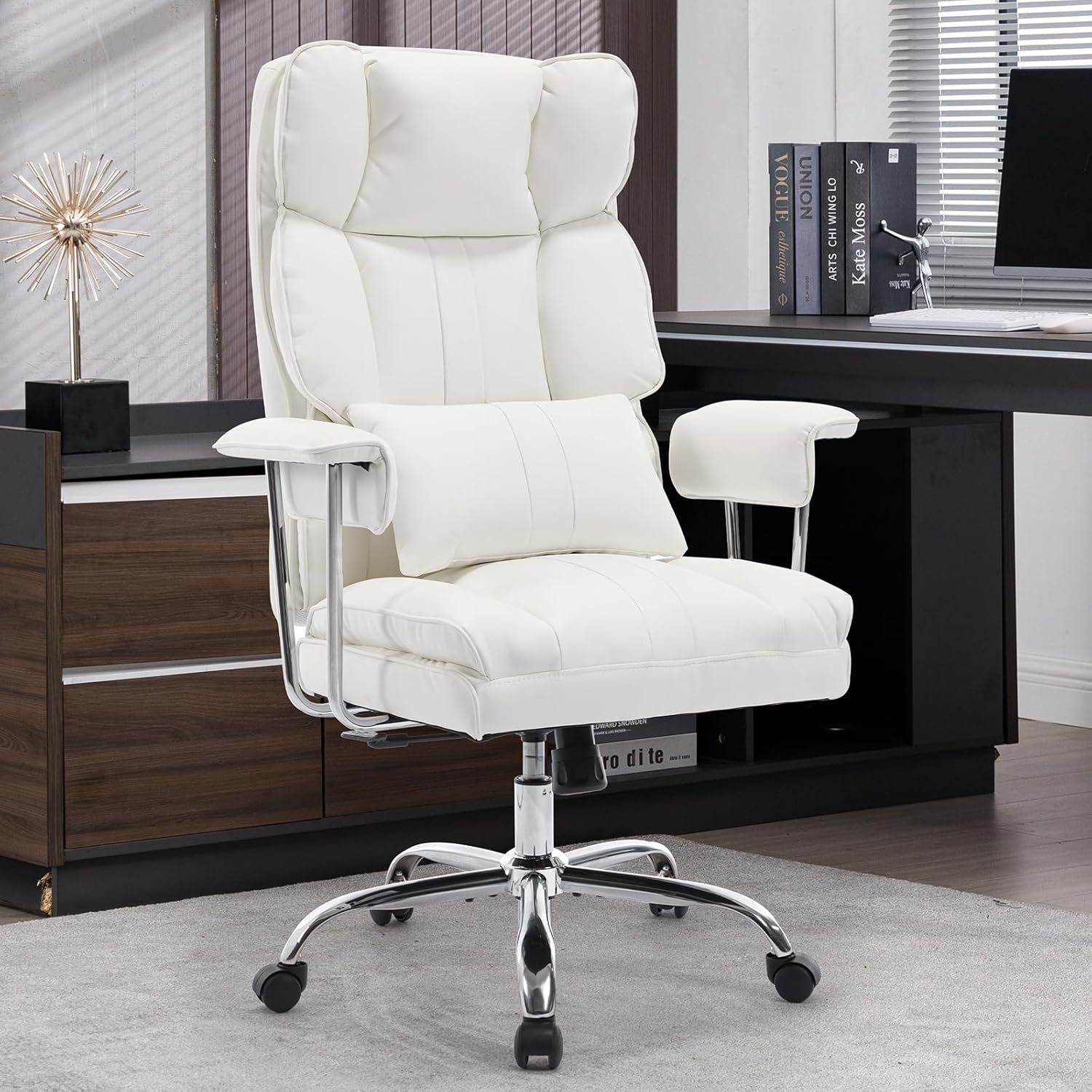 Big and Tall Office Chair 500lbs Wide Seat Executive Office Desk Chair High-Back Office Task Chair with,Ergonomic Lumbar Support Computer Office Chairs for Heavy People(White)