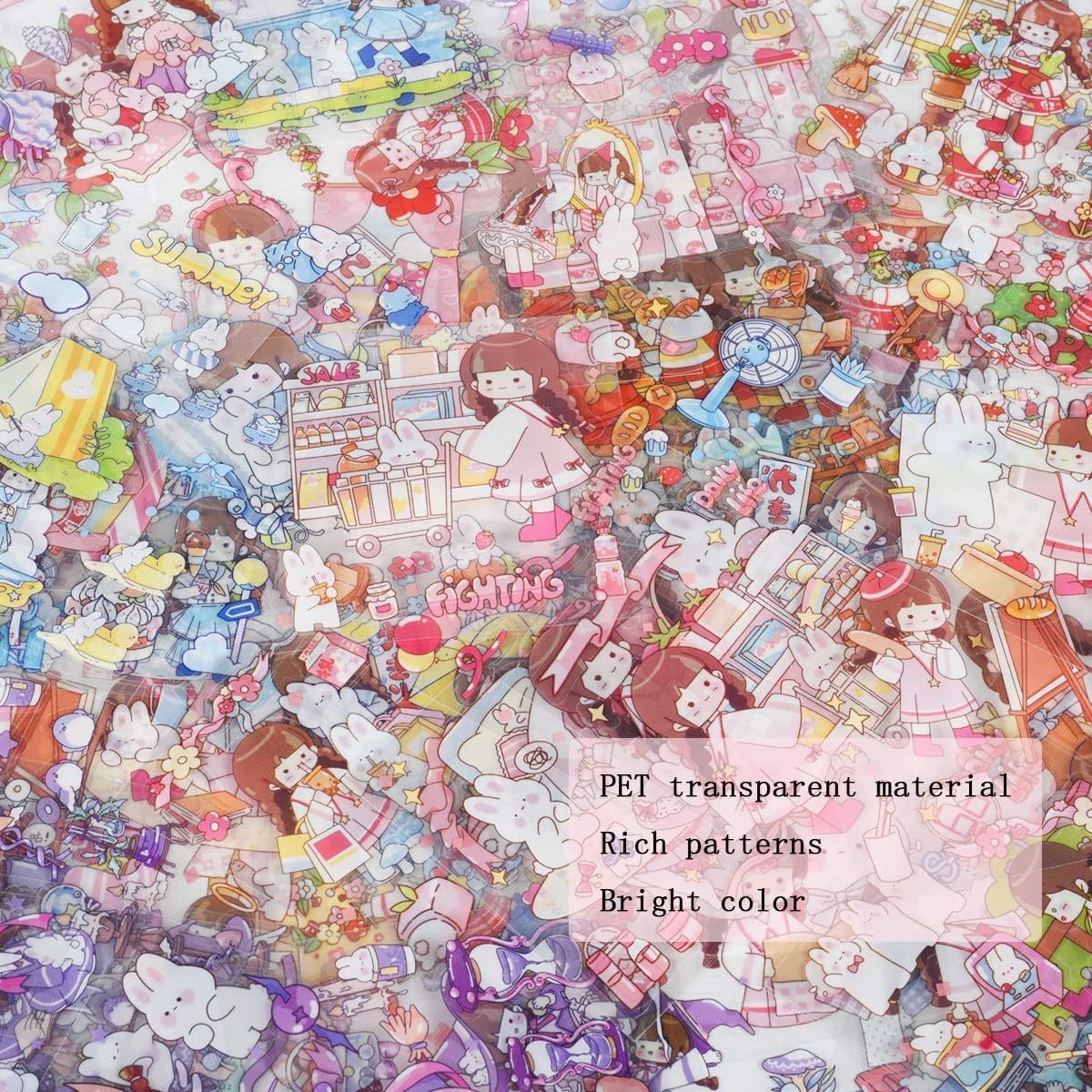 - SPECIFICATIONS - Our kawaii cartoon girl stickers are made of high quality PET material. Each set has 100sheets of stickers with different patterns per sheet. They are composed of a gift box, The size of package box is 185mm*185mm (7.3inch*7.3 inch). 100 sheets in 4 grids, 25 sheets each. The size is 80mm*80mm (3.1inch*3.1 inch)for each sheet.