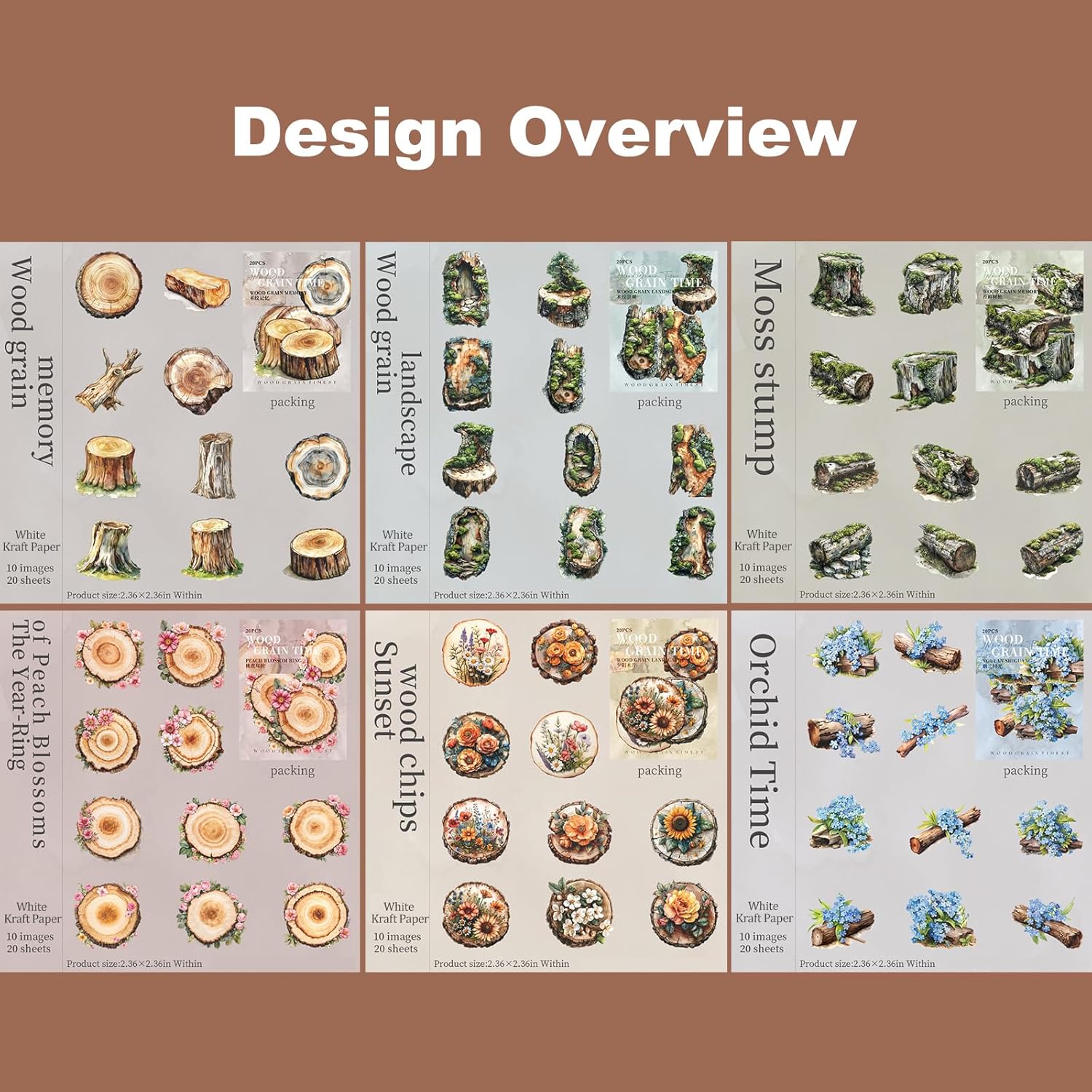 - Rustic Nature Style: This sticker set includes 60 unique designs across 6 themes with 120 pieces featuring tree slices floral art moss and stumps enhancing your journal pages with vintage woodland charm