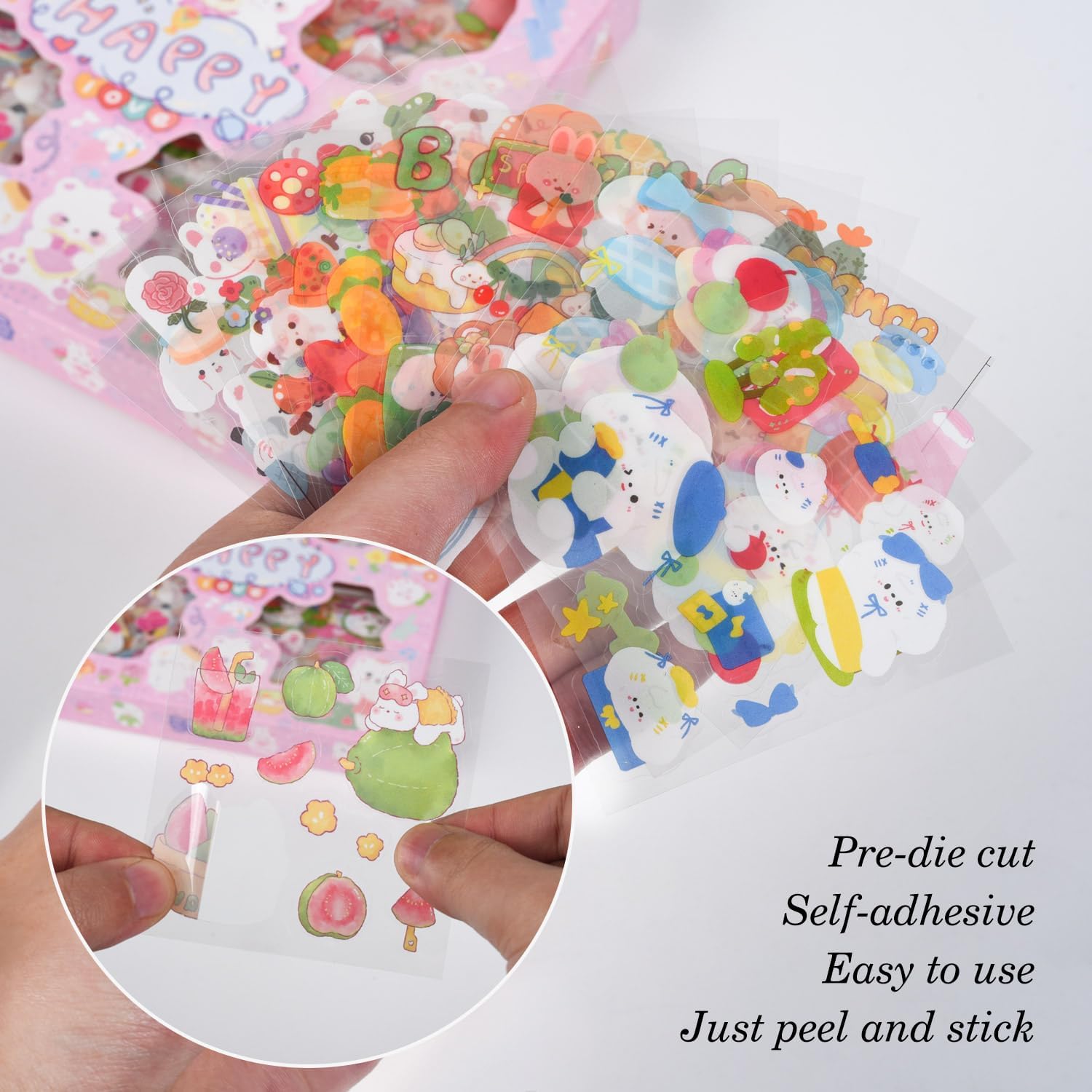Kawaii Cartoon Animals Scrapbooking Stickers - Cute PET Transparent Bunny Bear Journaling Sticker Clipping Decor for Journals Diary Scrapbook Photo Album Laptop Planner Arts Gift Crafts