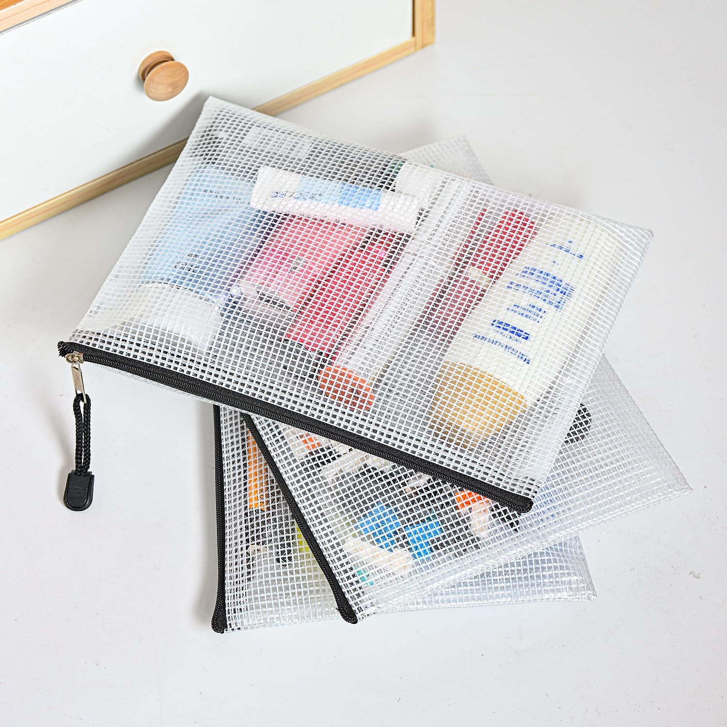 D-KINGCHY 24Pcs Zipper Storage Bags, Plastic Mesh Zippered Pouch for Organization, Waterproof Versatile Bags for Office Supplies School Travel