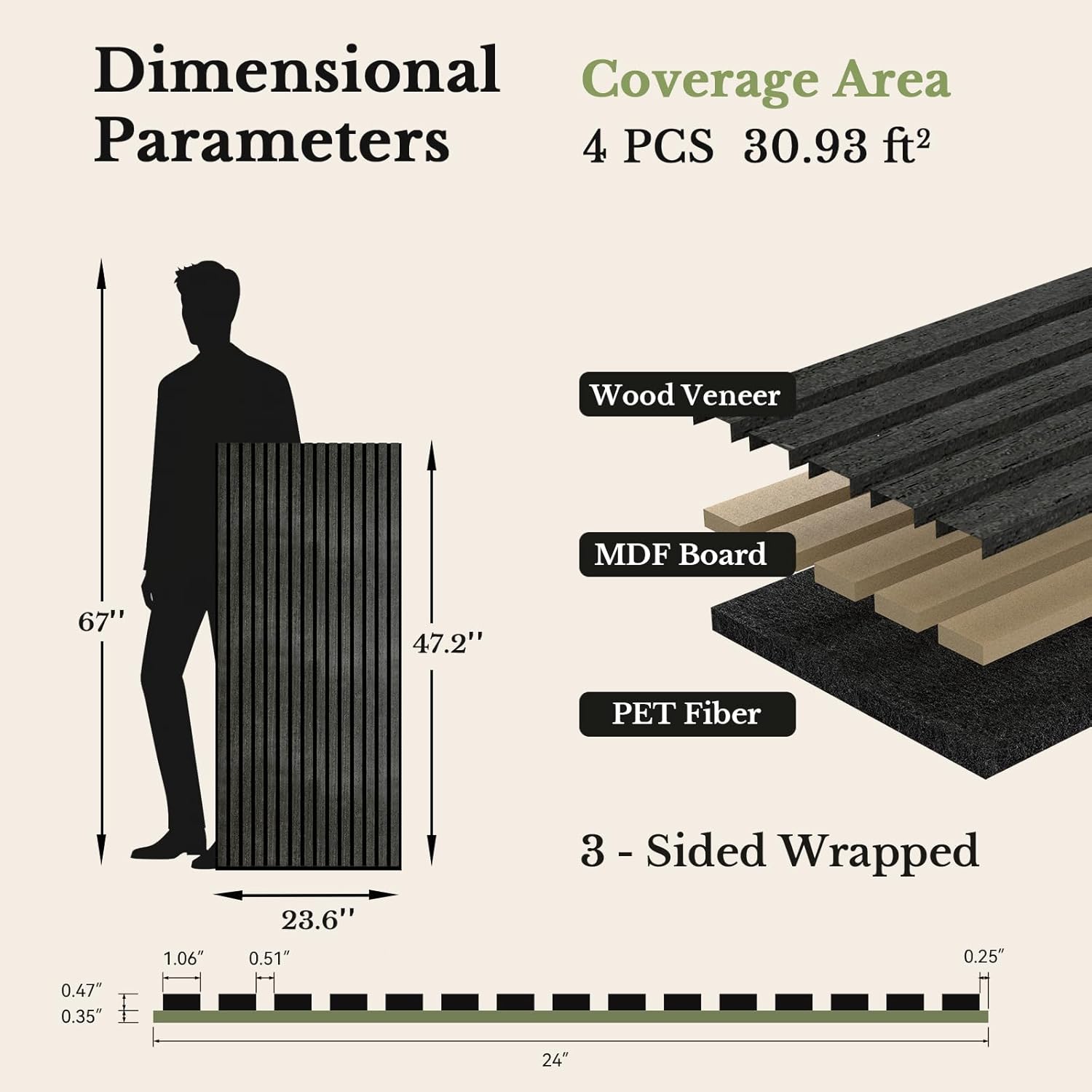 - Pack Size and Advice: Comes in a pack of four 23.6" x 47.2" wood panels, which can covers about 30.93 sq;ft; We suggest ordering a sample pack first to select the desired finish for your project prior to placing the final order