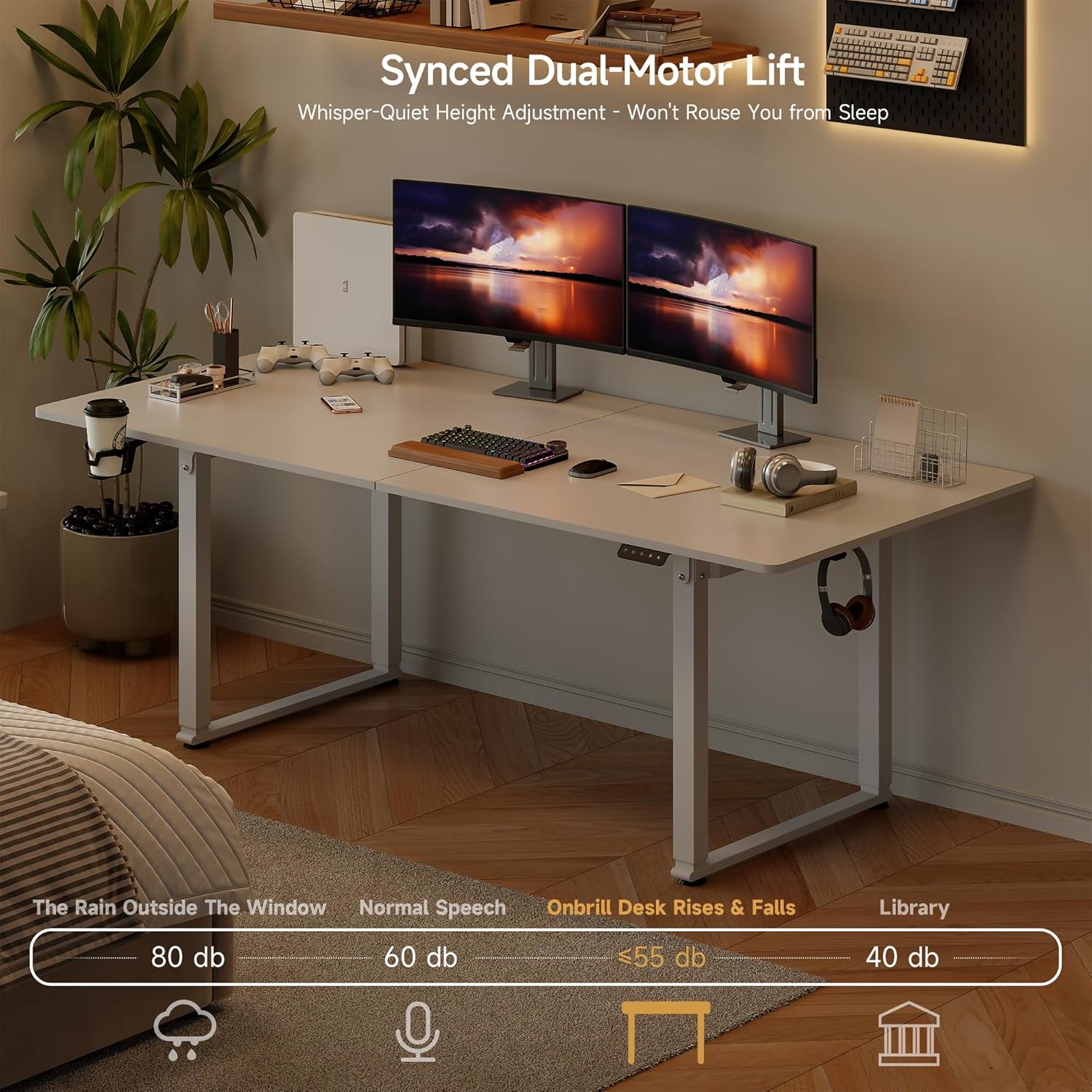 - Unmatched Stability & Smooth Operation: Equipped with dual-motor technology, this height-adjustable desk delivers effortless and quiet adjustments (approx. 55 dB noise level). The intuitive memory controller allows you to save your preferred standing or sitting heights for quick recall, enhancing convenience during work or study sessions.