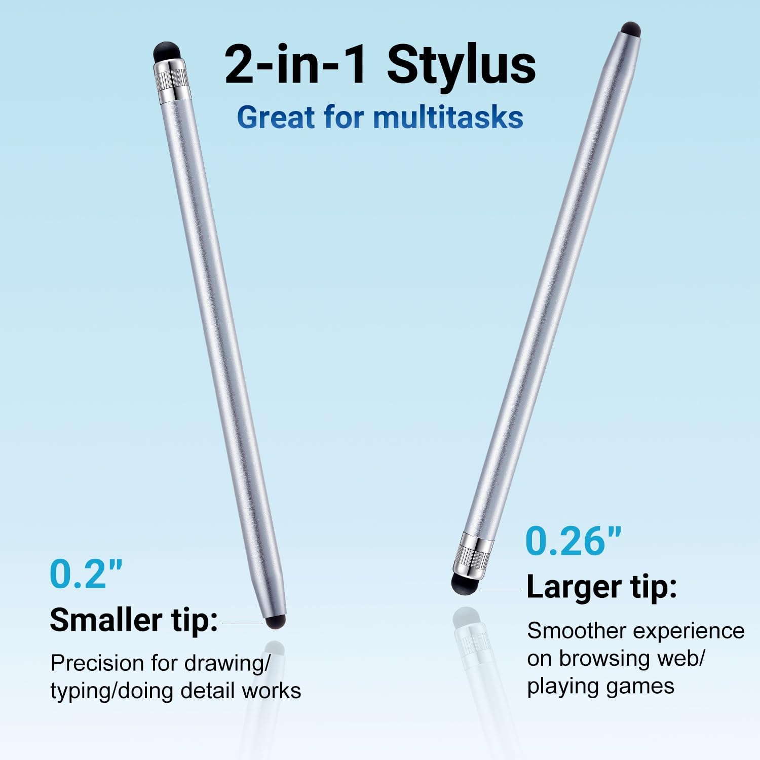 - 【2-in-1 Stylus Pens】 The Linfanc stylus pen meets all your needs in one stylus pen. Designed with two distinct rubber tips, the smaller tip offers enhanced precision for drawing and detailed tasks, while the larger tip provides a smoother experience for sliding screens, browsing web, and gaming.