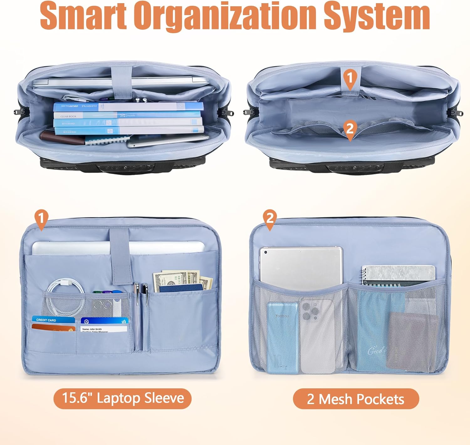- 【Accordion File Organizer】The front compartment features accordion design with 4 sections, providing organized storage for A4 files, contracts and other important documents. Easy access without clutter, making it an ideal choice for business professionals.