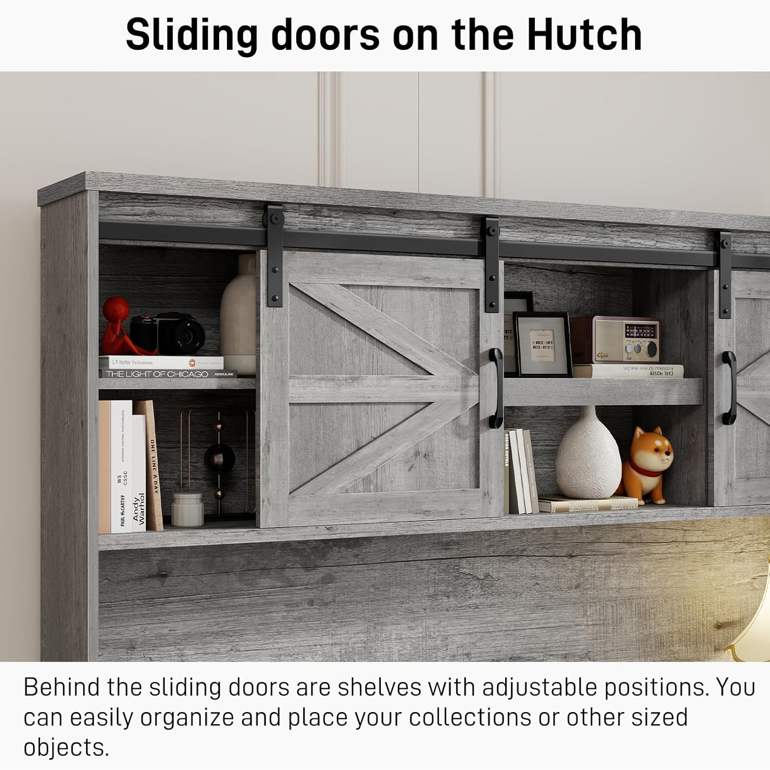 - 【Rustic Farmhouse Desk】This elegant executive desk with a hutch and sliding barn-style doors embodies the charm of a farmhouse design, making it a superb addition to any home office setup. Featuring a spacious desktop and ample storage options, it promotes an organized and cozy workspace.