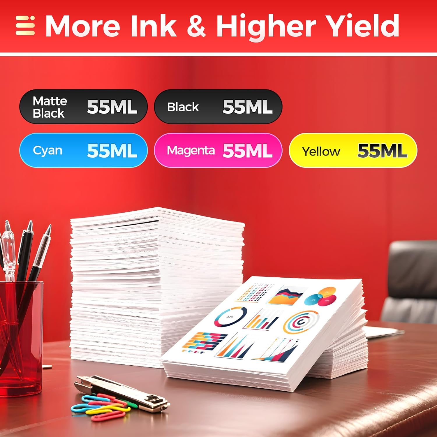 - Ink Volume: The capacity is 55ML per ink cartridges, Total ink volume is 275ml.