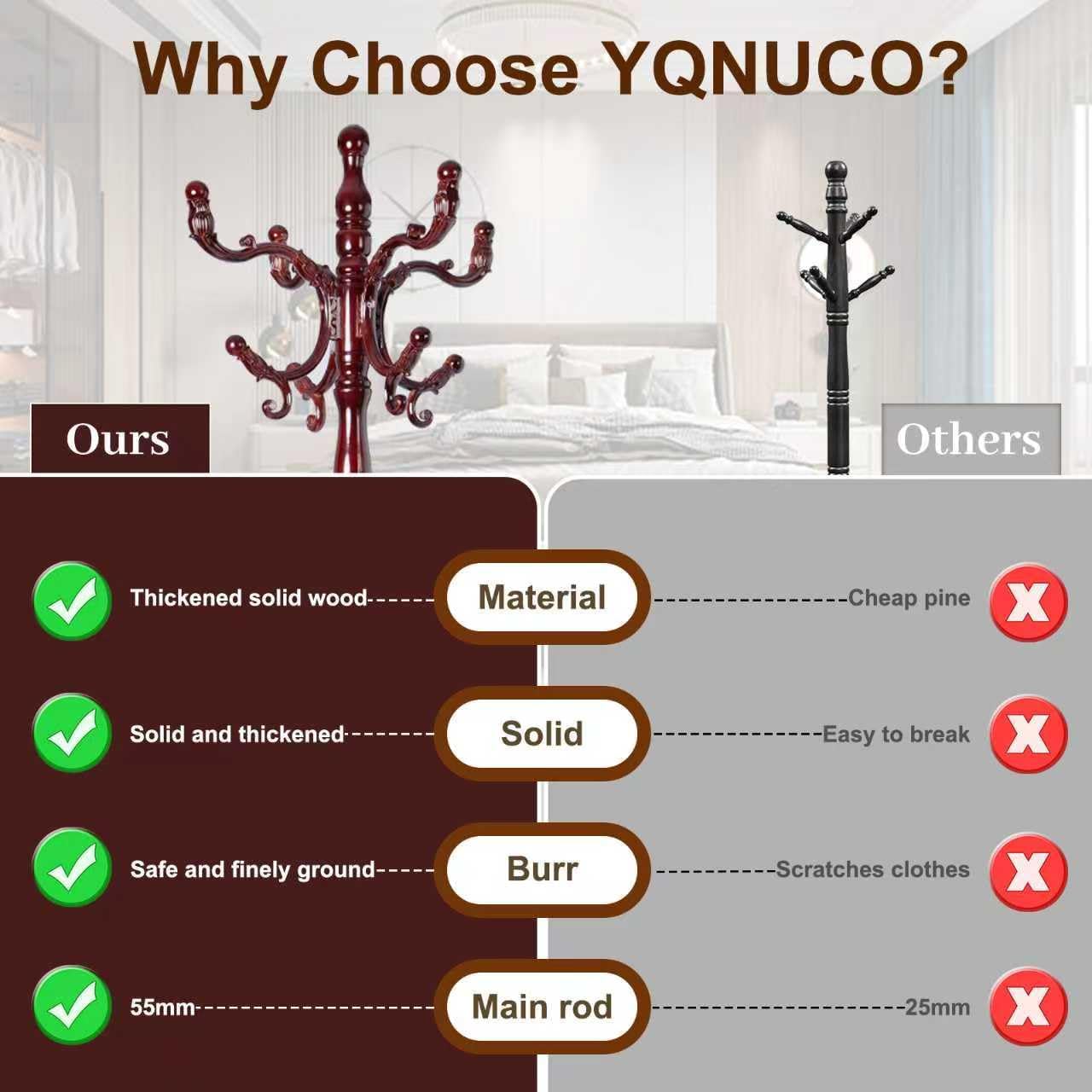 - AAA LEVEL BIRCH WOODEN MATERIAL: This coat rack is crafted from high quality solid birch wood, ensuring durability and a sturdy structure capable of holding your clothes and items without wobbling. The freestanding coat rack’s double-thickened, round base offers excellent stability. It’s a reliable choice that brings both steadiness and elegance to your home!