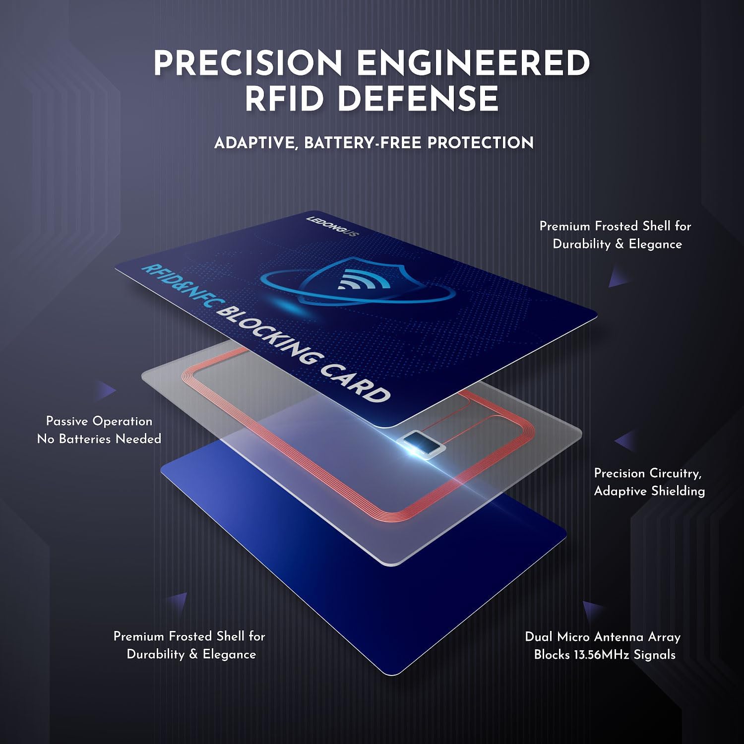 - Ultimate Wallet Protection Instantly protect your entire wallet from contactless RFID and NFC theft (electronic pickpocketing) with just one ultra-thin blocking card. No battery or setup needed – just slide it in.