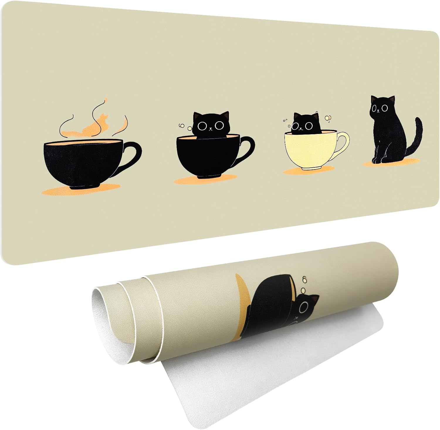 - Easy to Clean Desk Cover:Made of water-resistant and durable Faux leather,this black cartoon cat mousepad help prevent your desk from damages such as scratches,stains,spills and heat. Easy to clean, just wipe with a wet cloth or tissue.