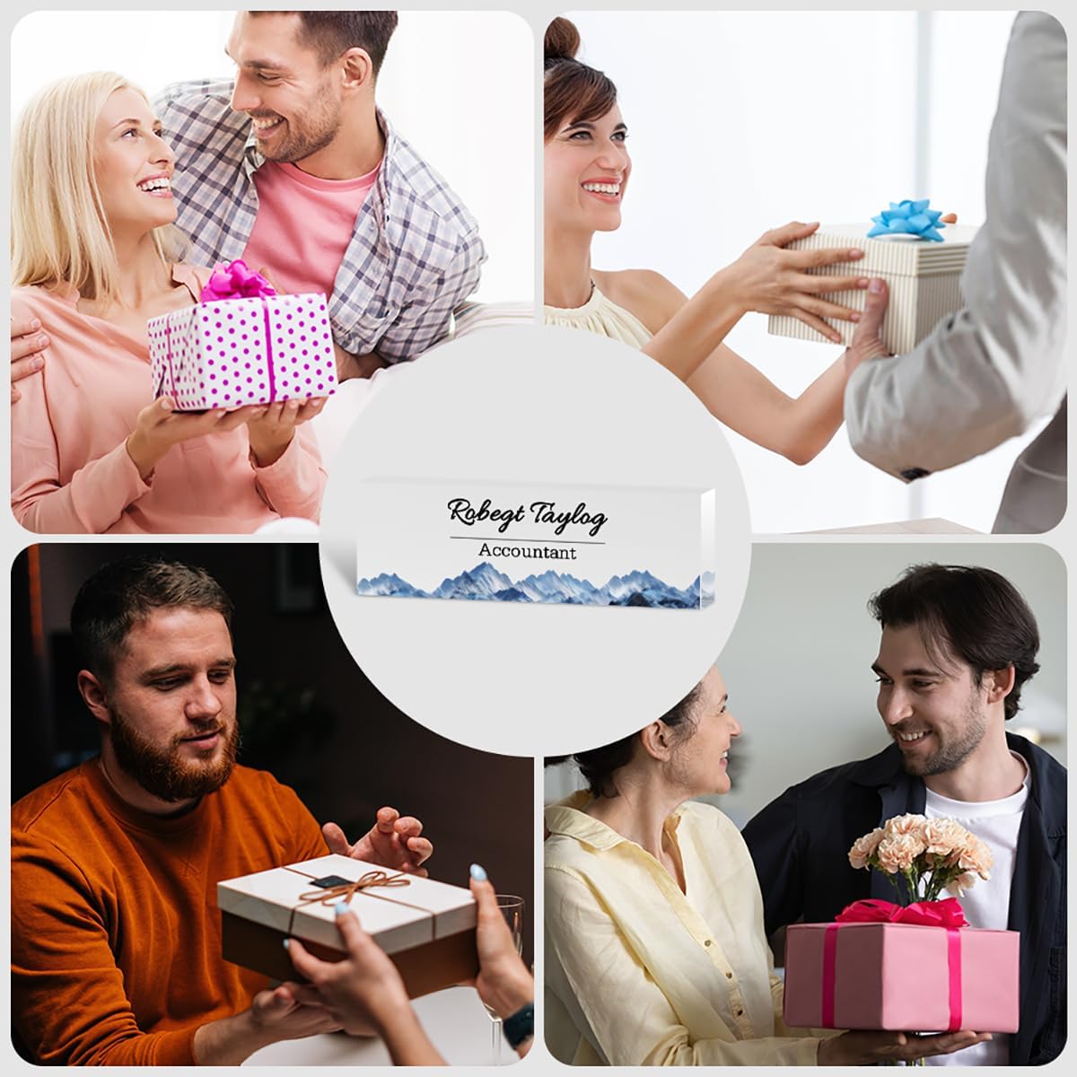 Personalized Office Desk Name Plate on Acrylic Glass - Custom Nameplate Decor, Accessories - Gift for Boss, Coworkers