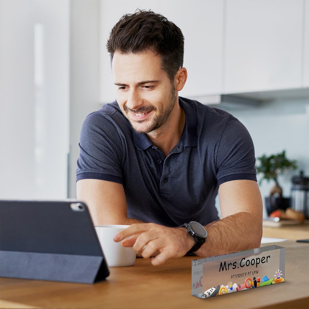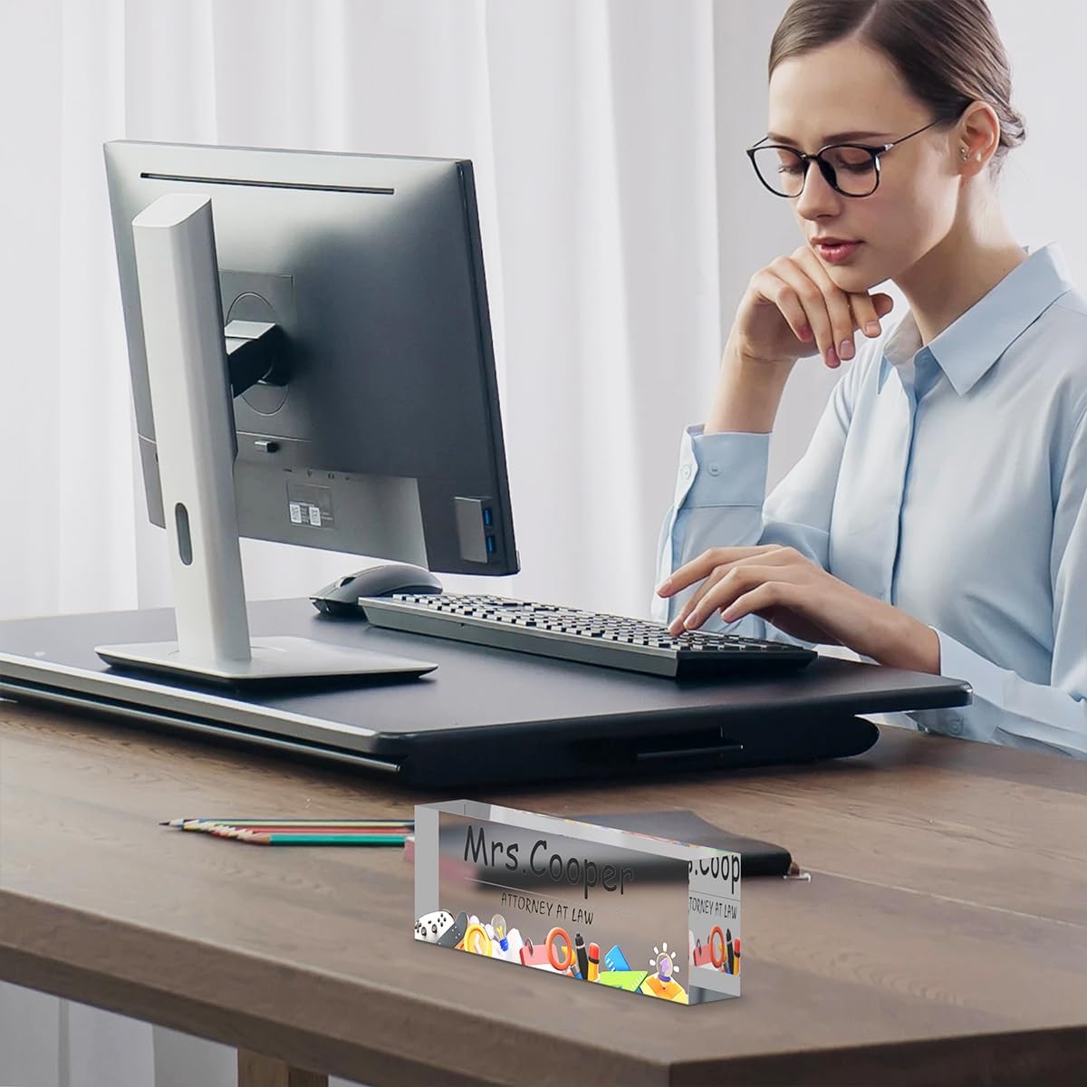 Personalized Office Desk Name Plate on Acrylic Glass - Custom Nameplate Decor, Accessories - Gift for Boss, Coworkers