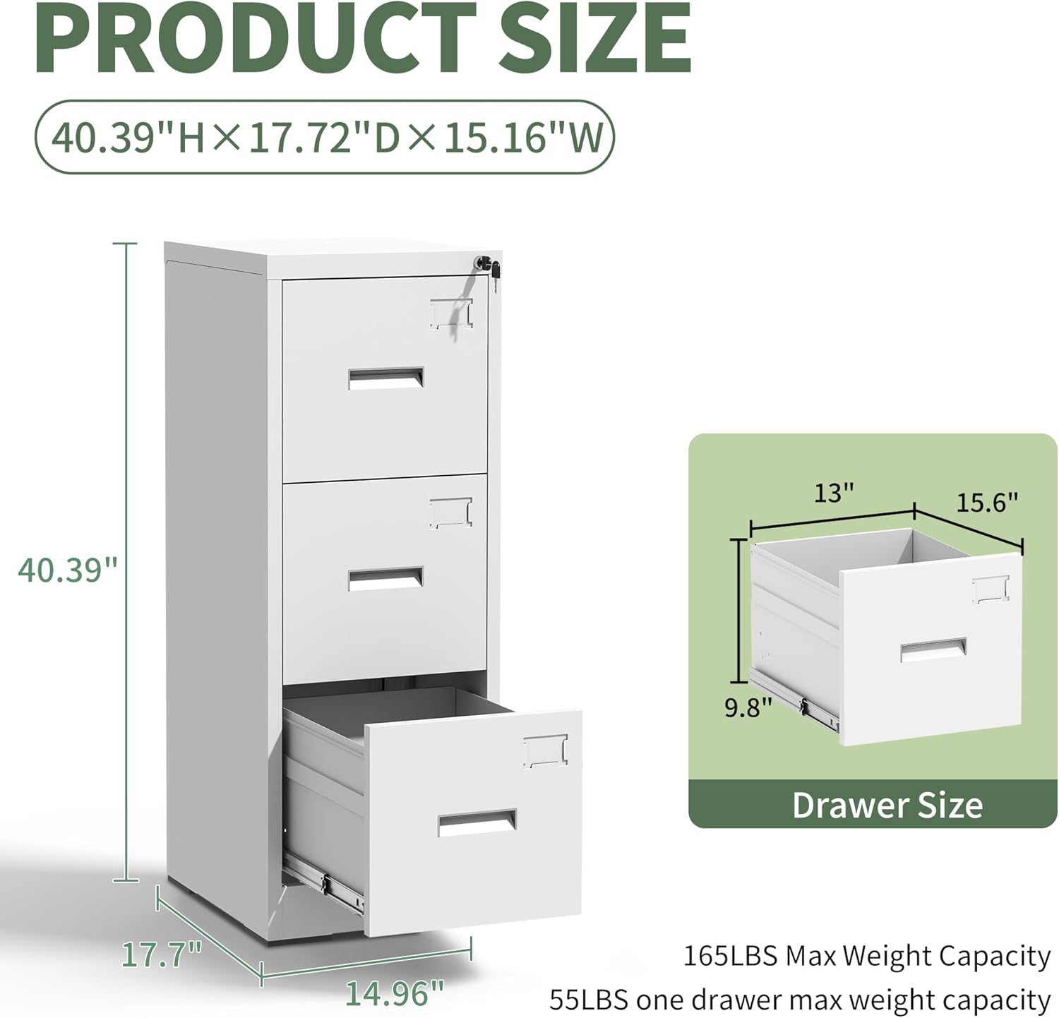 3-Drawer Locking Vertical File Cabinet, Metal Storage Cabinet for Office/Home – Secure Vertical Filing for Letter/Legal/A4/F4 Documents, Easy to Assemble Steel Cabinet (White, 3 Drawer-15W)