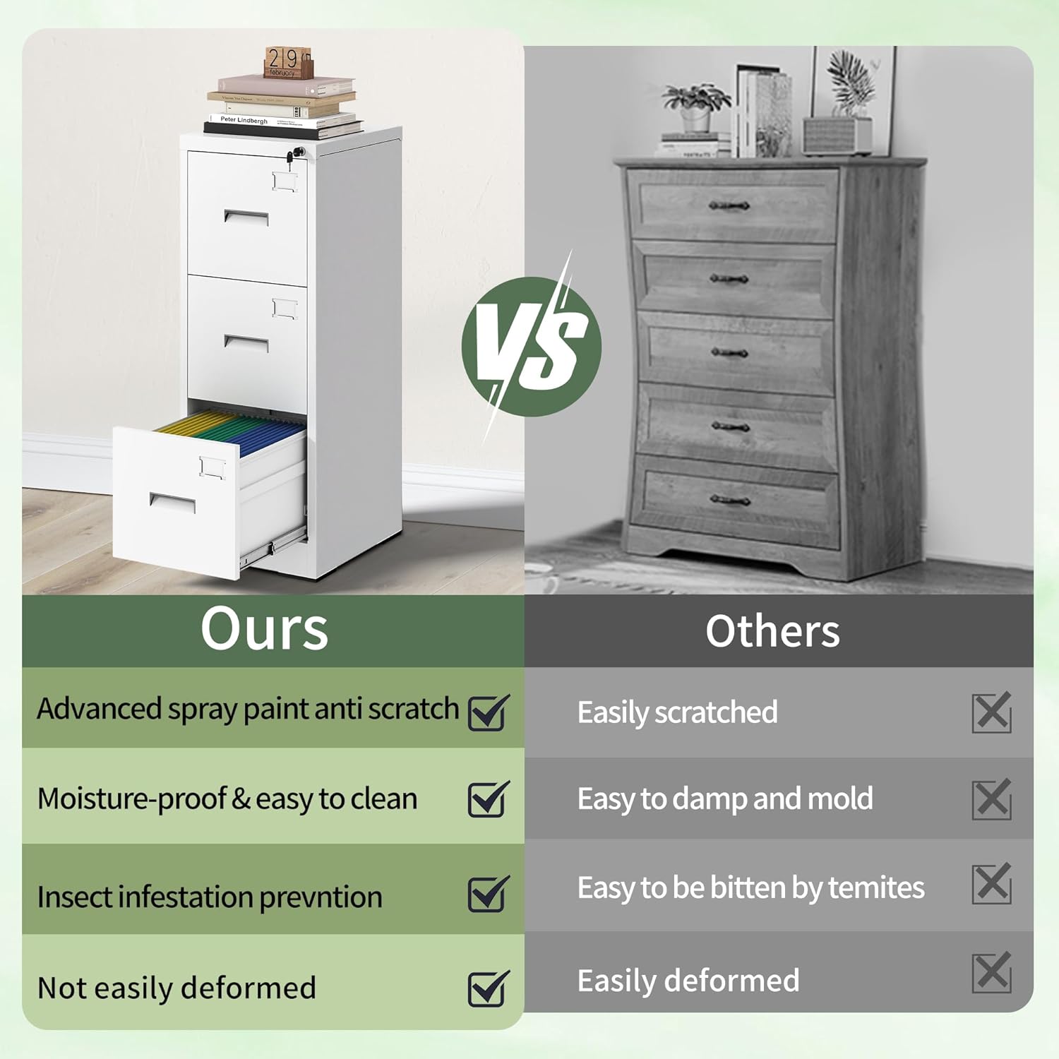 - 【Advanced Security】 Designed with a reliable locking mechanism and two dedicated keys, this file cabinet ensures top-tier protection for your confidential documents and valuables, effectively deterring unauthorized access. Ideal for offices, home studies, or bedrooms, it seamlessly integrates into any space while keeping your essentials secure and well-organized.