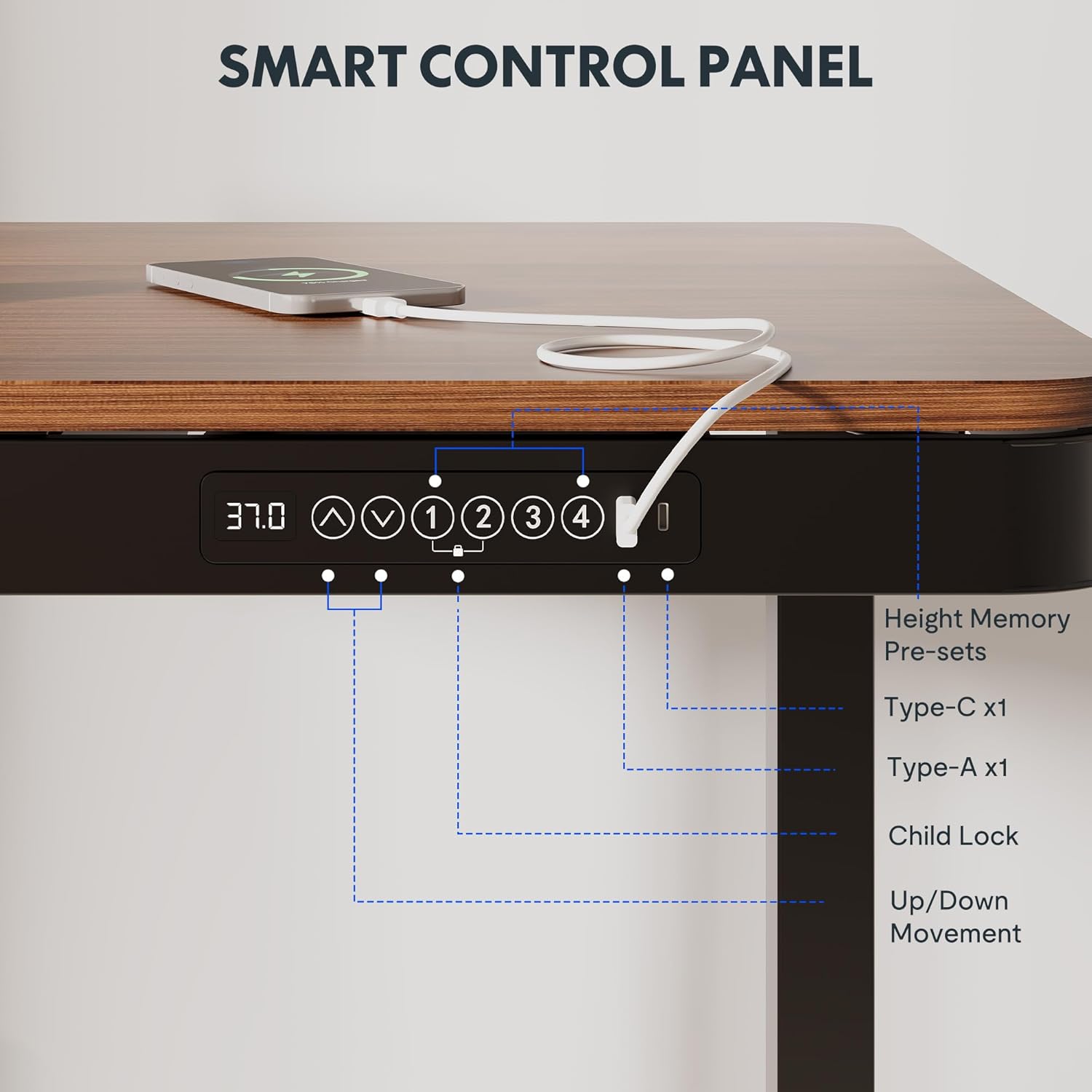 - Embedded Multiple Functions: This standing desk comes with four programmable height presets, making it easy to save your preferred heights. a child lock button helps prevent accidental touch. Charge up to three devices with integrated USB ports without mess & hassle. (Note: USB ports may pause charging while adjusting desk height, Laptop charging is not supported)