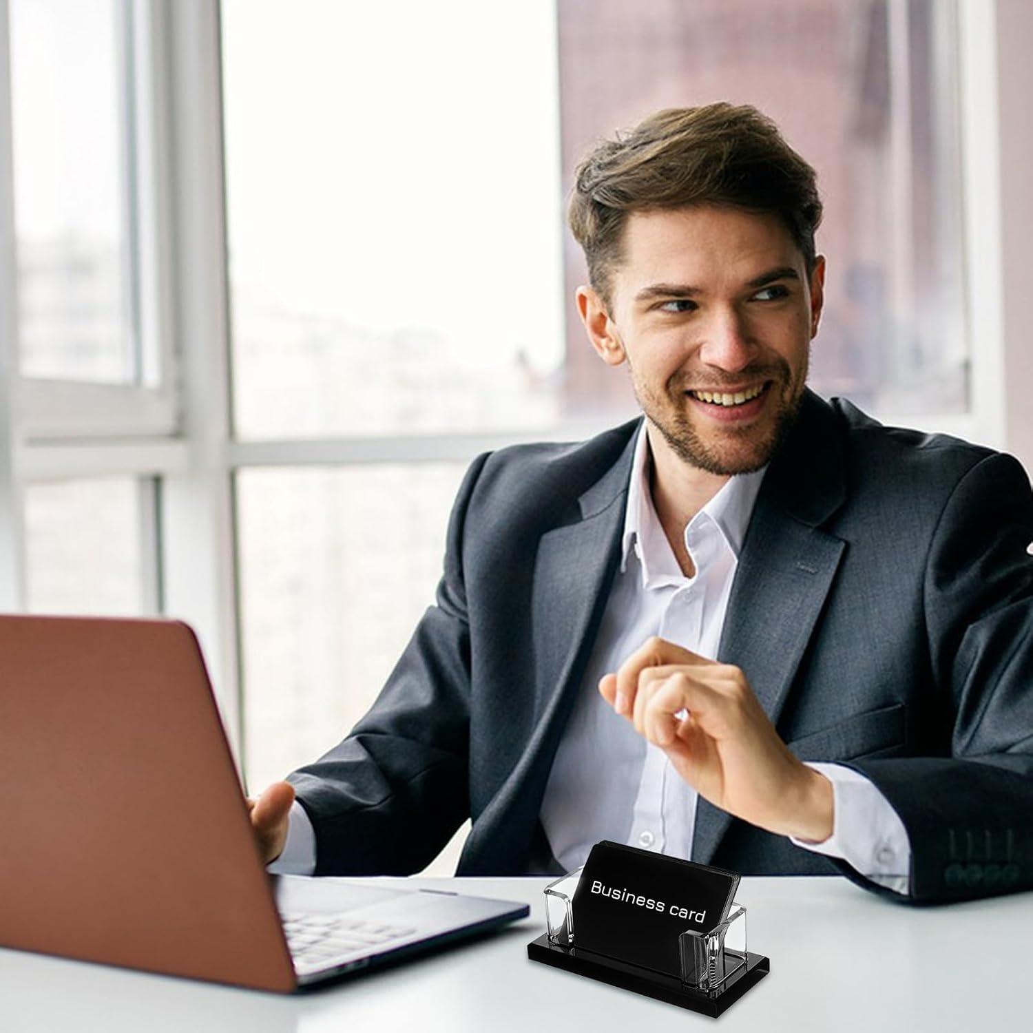 - 【Clear Durable Build】 Crafted from transparent acrylic, this clear card holder maintains visibility of your branding. The smooth, scratch-resistant acrylic organizer (4.5x1.9x1.5 inch) withstands daily office use while complementing modern workspaces with its minimalist aesthetic