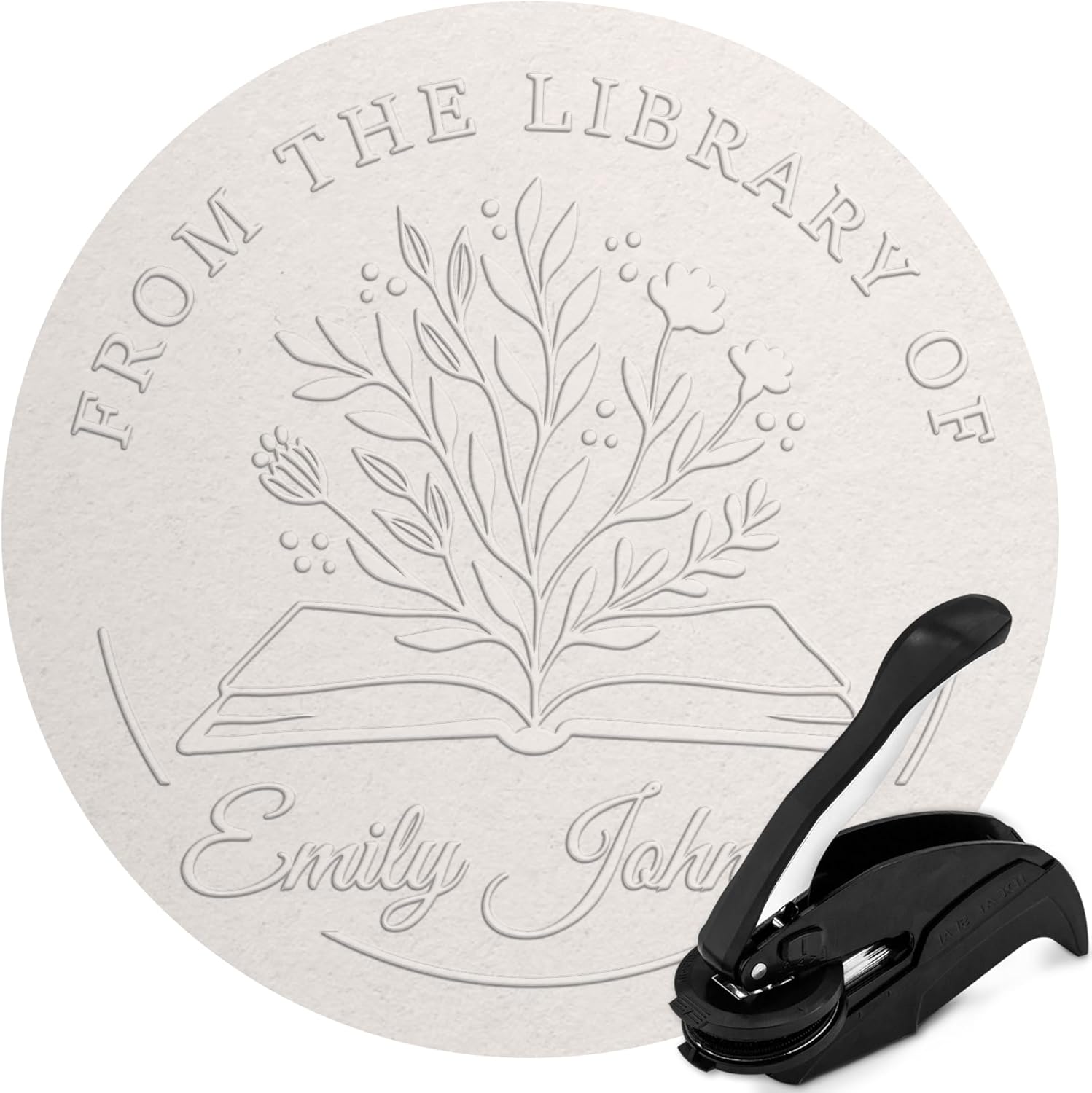 Custom Library Embosser - Style 101 - Embosser, Wood Stamp or Self Inking Stamp - Book Embosser Includes 50 Gold Seals - Custom Stamp Seal from The Library of