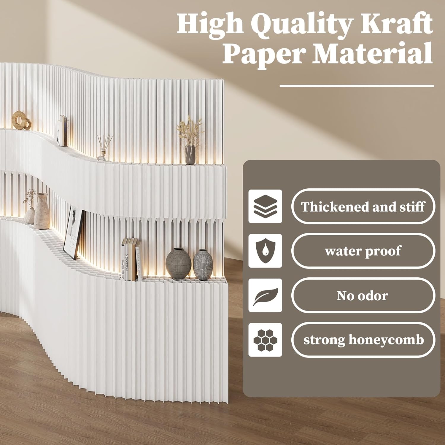 - 【High Quality Kraft Paper Material】This paper room divider is crafted from high-density honeycomb paper, ensuring exceptional durability and stability. Its enhanced wind resistance ensures it remains upright during everyday use. It’s odor-free and water proof, delivers reliable performance for long-term use.