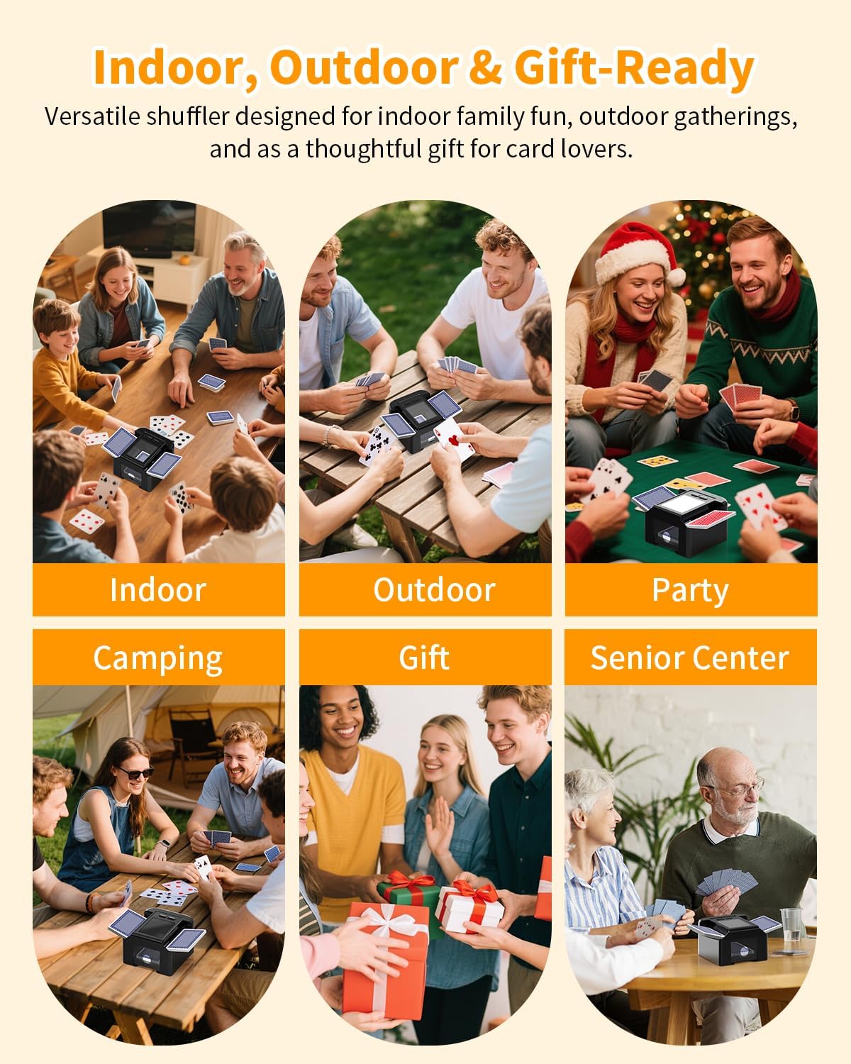 - 【Versatile Compatibility】: The uno card shuffler supports standard-size cards used in Uno,Poke,Blackjack,Skip-Bo,Texas Hold’em, Bridge, and card shuffler machine with a compact and portable design, it’s perfect for home party use or trave