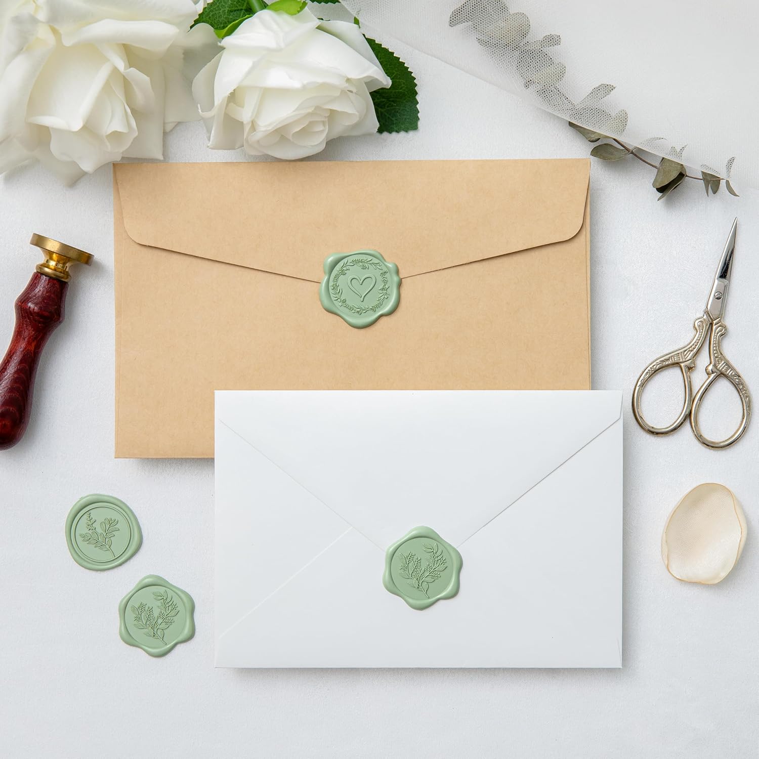 60 Pcs Sage Green Wax Seal Stickers Self-Adhesive Envelope Seals Stamp Stickers, Perfect for Wedding Invitations Seating Chart Christmas Gift Wrapping 3 Designs in 1 Pack