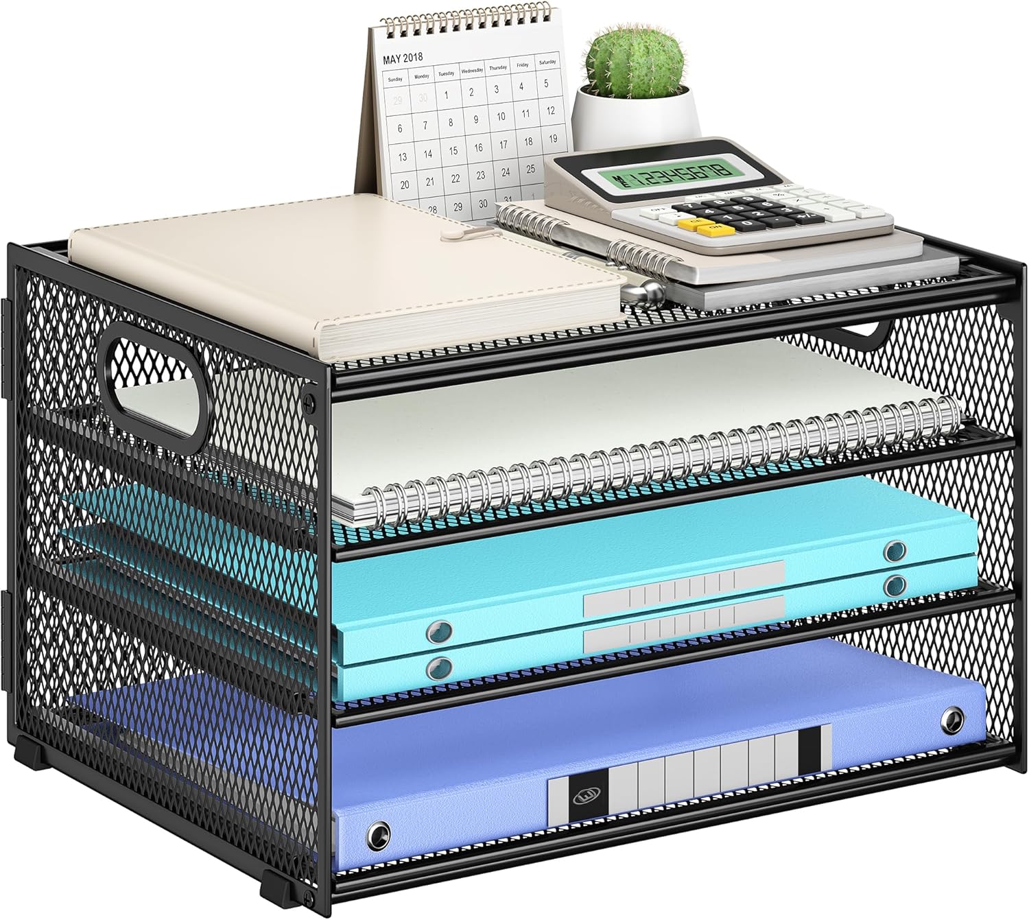 - Paper Organizer Function and Usage: The mesh desktop file organizer can hold various items including paper, folders, books, bills, notebooks, etc. The open design enables quick identification and access to contents, helping to declutter and organize the desk