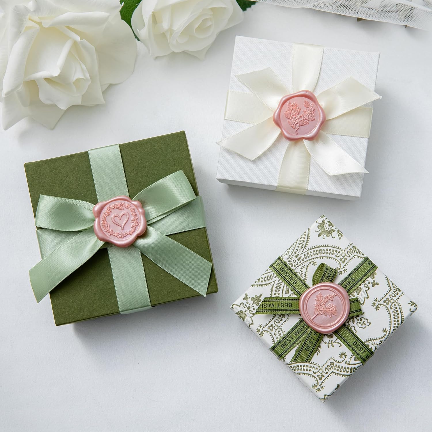 60 Pcs Rose Gold Wax Seal Stickers Self-Adhesive Envelope Seals Stamp Stickers, Perfect for Wedding Invitations Seating Chart Christmas Gift Wrapping 3 Designs in 1 Pack