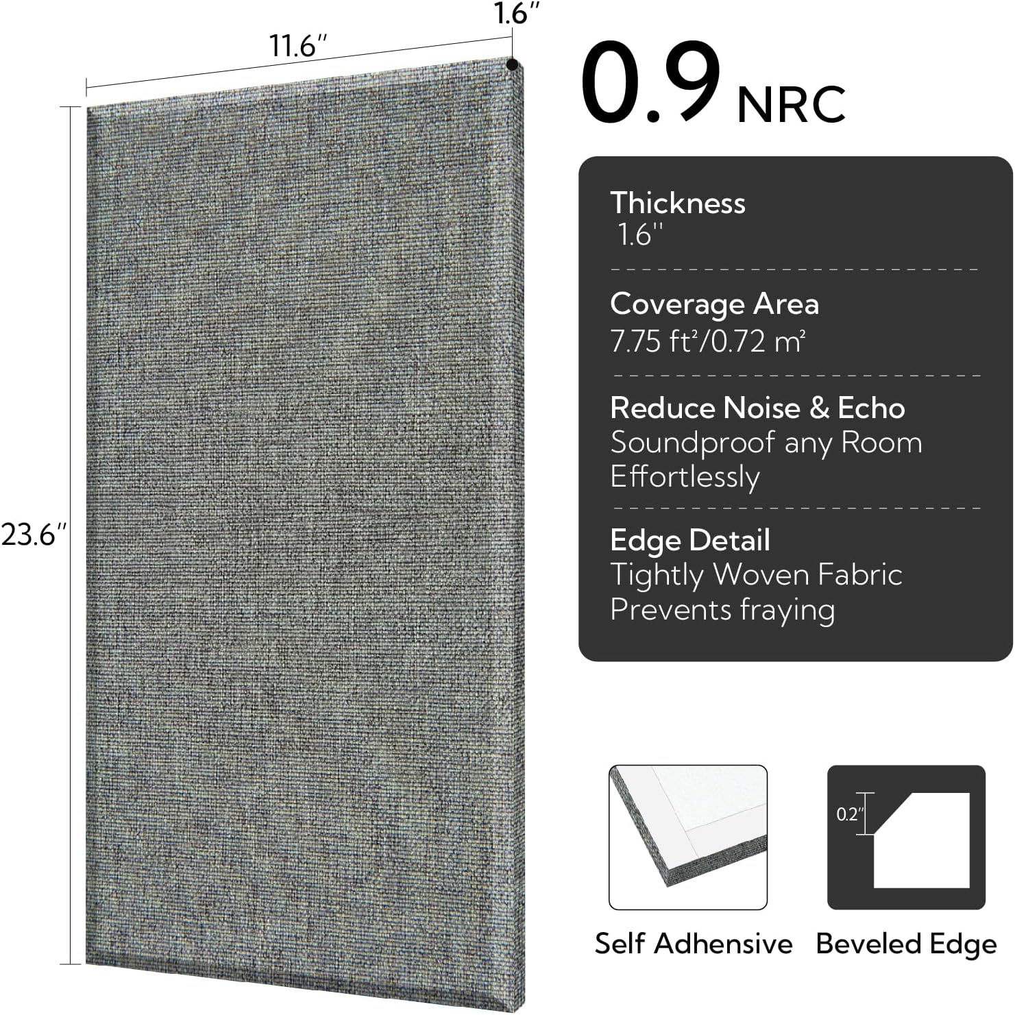 - Sound Dampening Panel 4 Pack: 11.8 X 23.6 Inches per sound proof panel for walls. Olanglab sound absorbing acoustic panel is 1.6'' thick, thicker than conventional 1'' panels, resulting in better sound absorption.