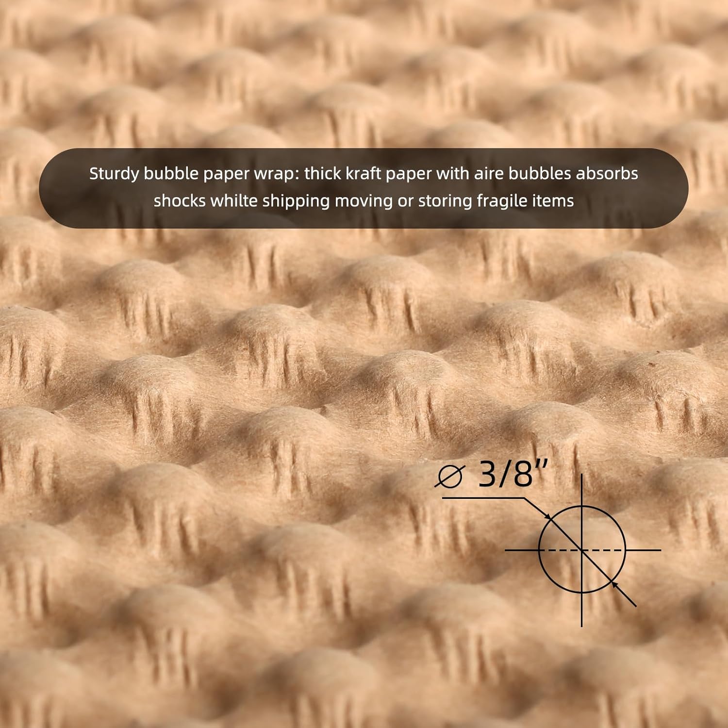 - 【Sturdy Kraft Packing Paper】: Moving paper packing sheets store compact with nested bubbles,thick kraft paper with aire bubbles absorbs shocks whilte shipping moving or storing fragile items.