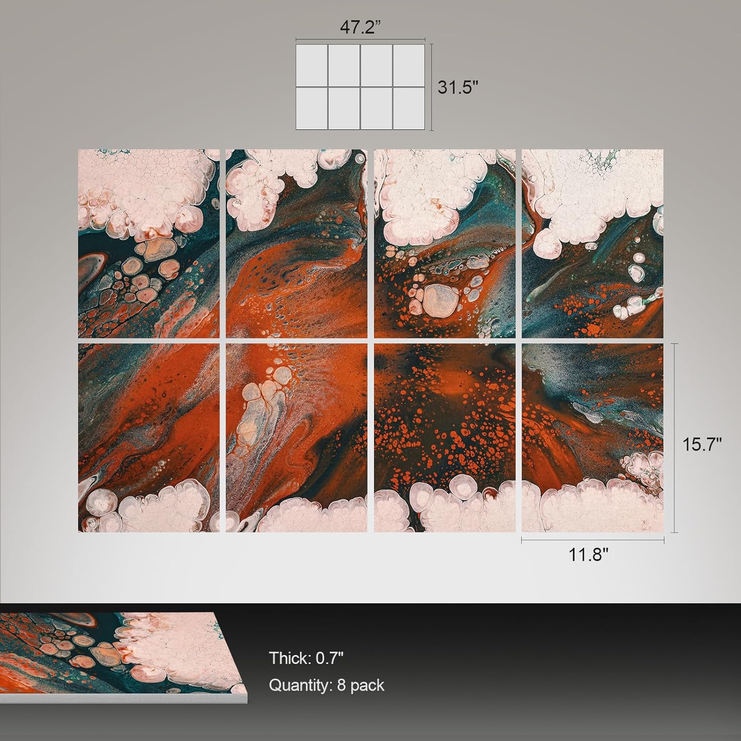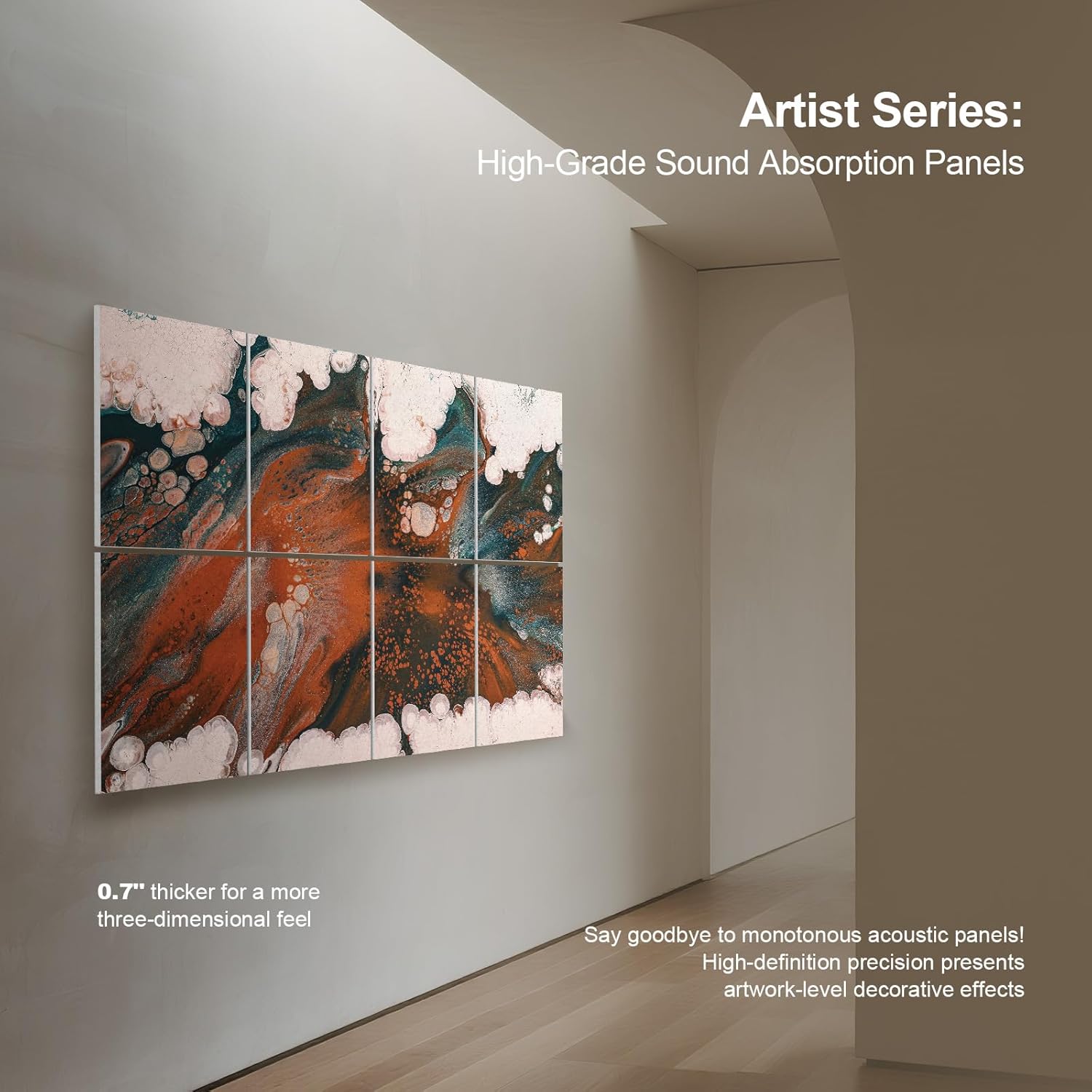 UMIACOUSTICS 8 Pcs 0.7Inch Thick Art Acoustic Panels, Total 47.2” x 31.5” Decorative Sound Absorbing Art Panels, Acoustical Wall Panels for Home, Office, Hotel, Orange-Light Leaping-Cloud