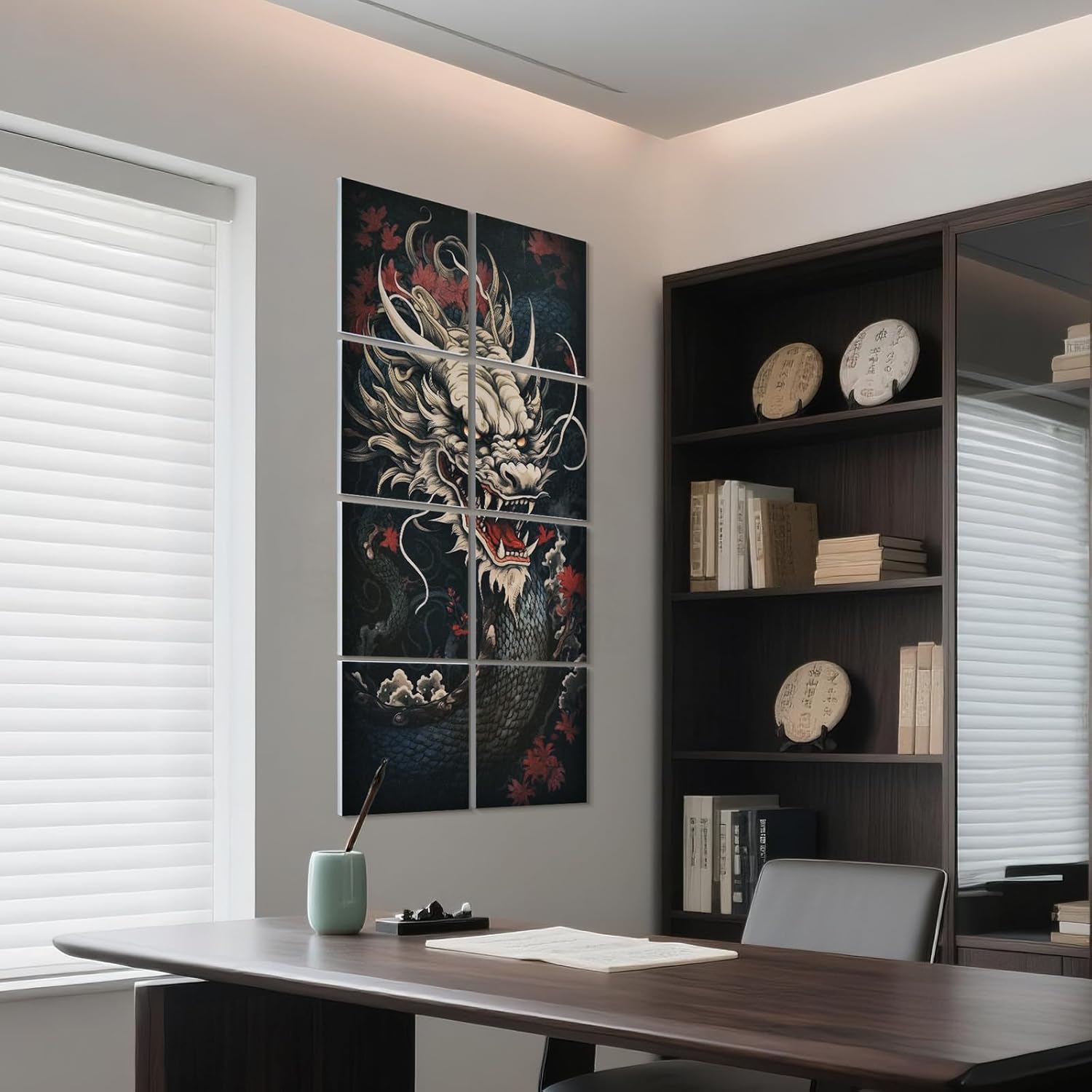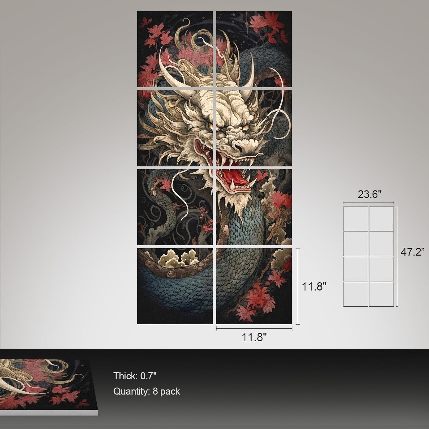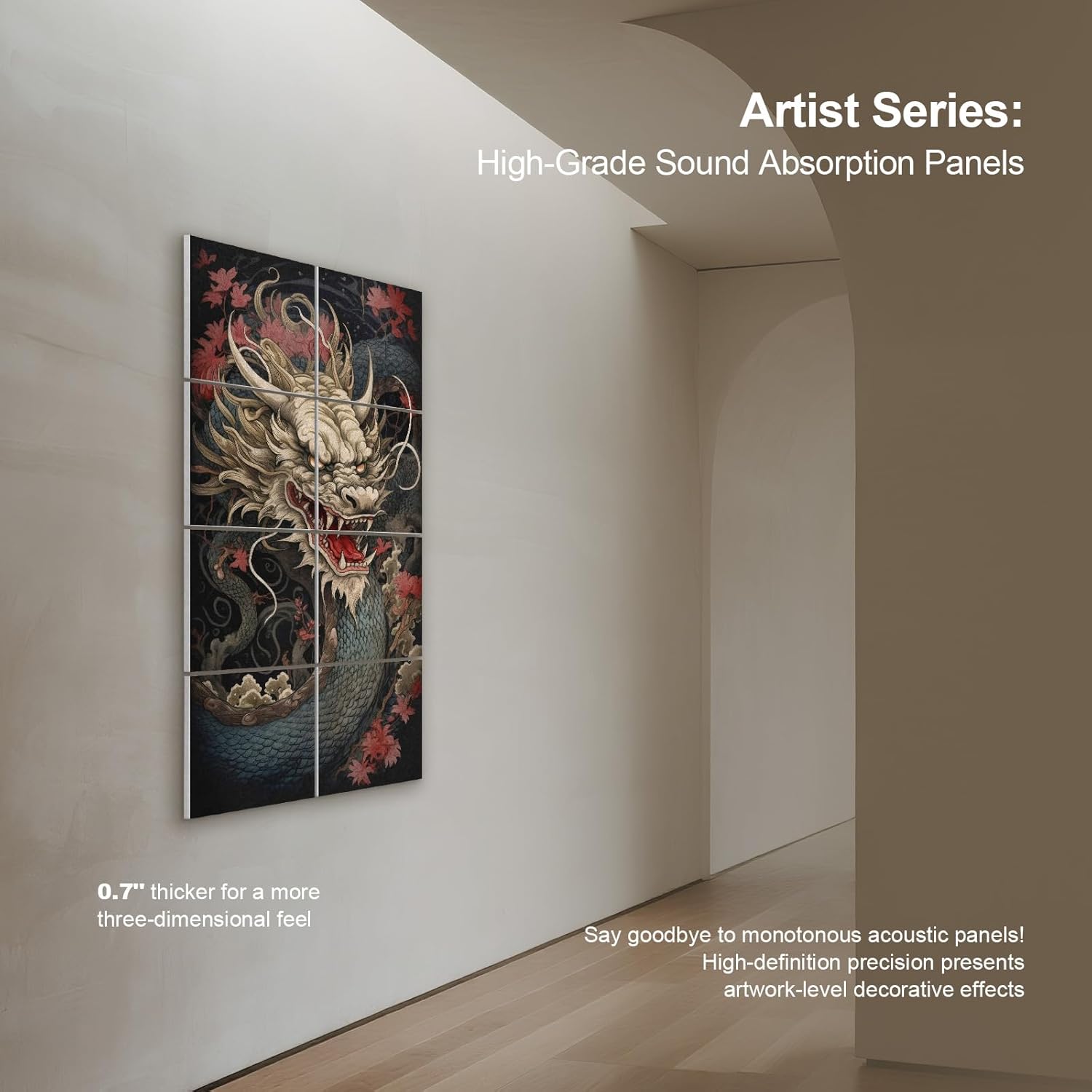 UMIACOUSTICS 8 Pcs 0.7Inch Thick Art Acoustic Panels, Total 47.2” x 23.6” Decorative Sound Absorbing Wall Panels for Home, Office, Hotel, Dragon-pattern-Painting