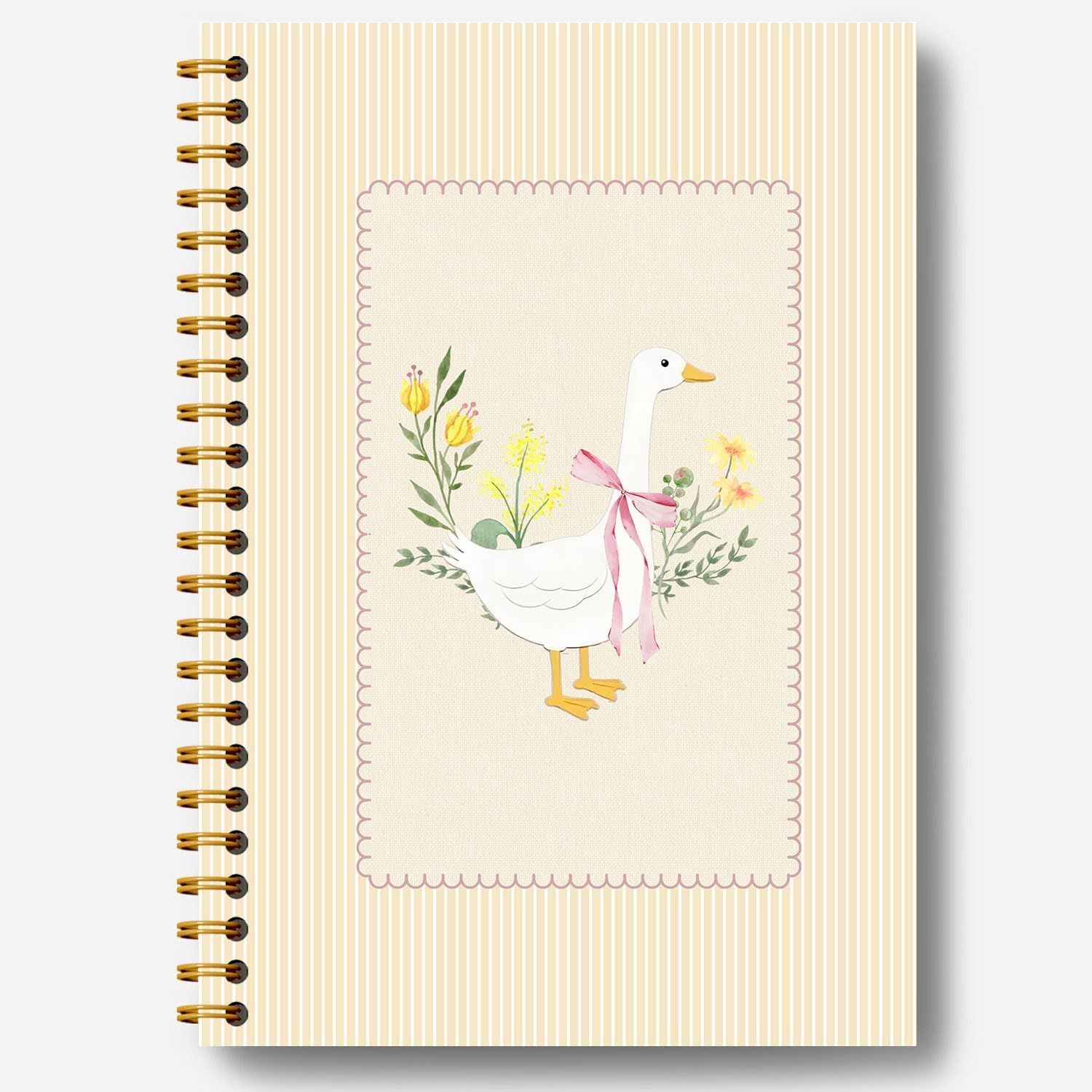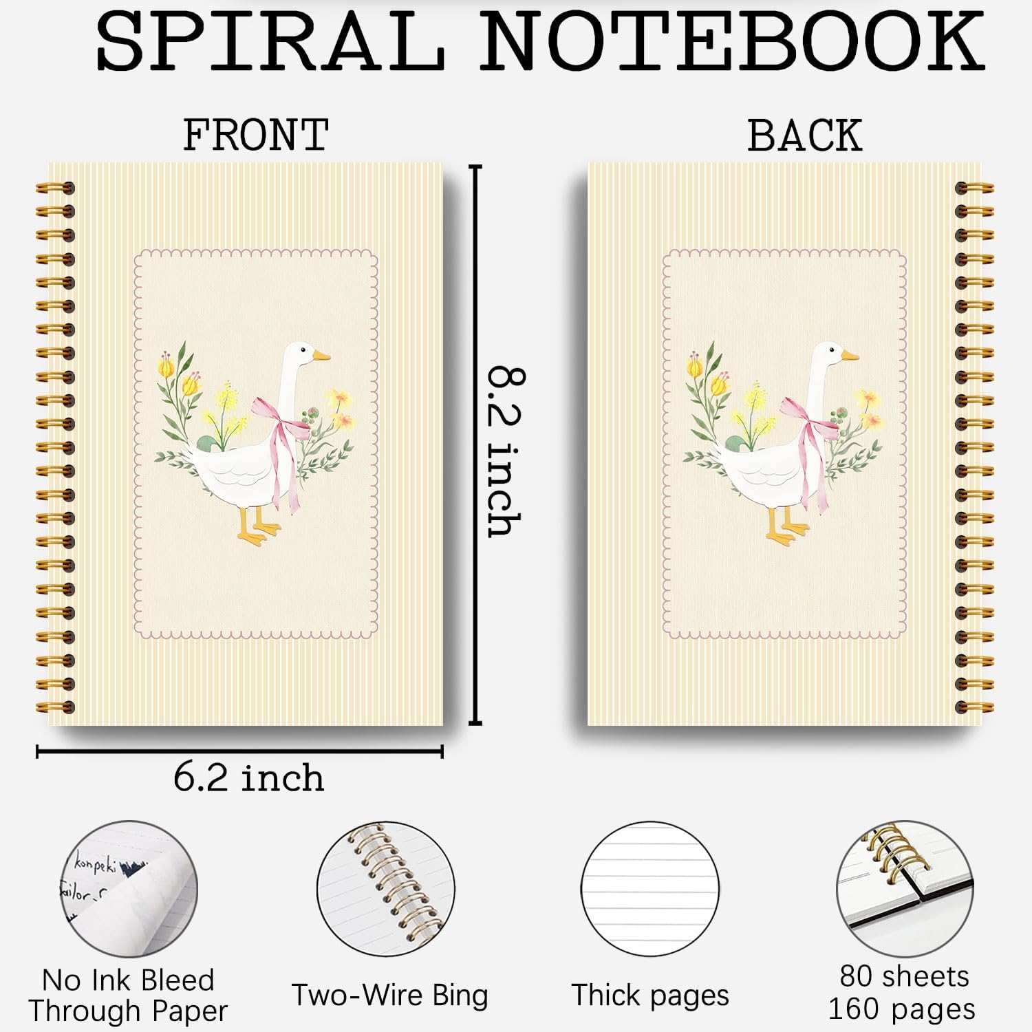 Guymn Coquette Pink Bow Floral Goose Notebook, Butter Yellow Cute Goose Journal for Kids Girls, Geese Animal Lover Gifts Hardcover Spiral Notebooks Journals 5.5x8.3 Inch
