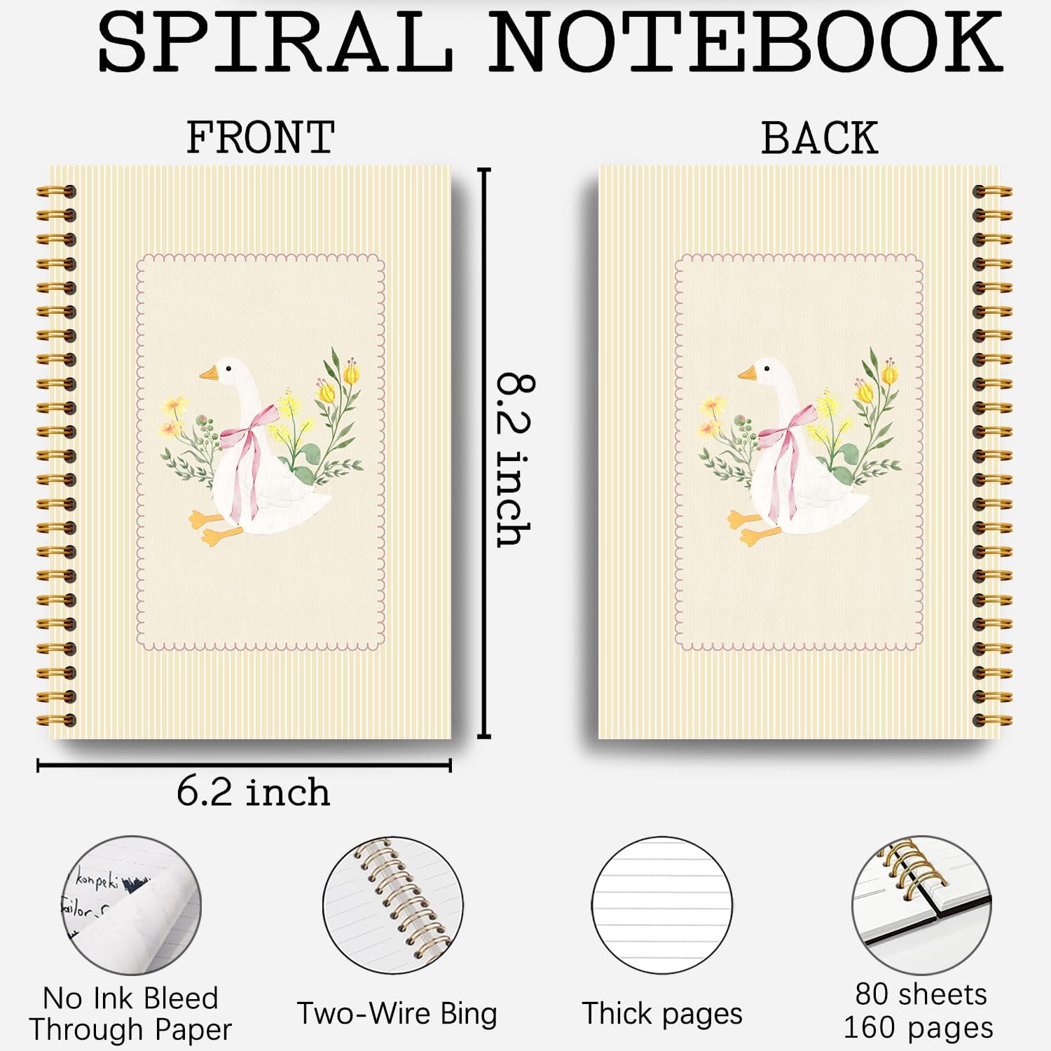 Guymn Light Beige Floral Goose Notebook, Preppy Pink Bow Goose Journal for Kids Girls, Geese Animal Lover Gifts Hardcover Spiral Notebooks Journals 5.5x8.3 Inch
