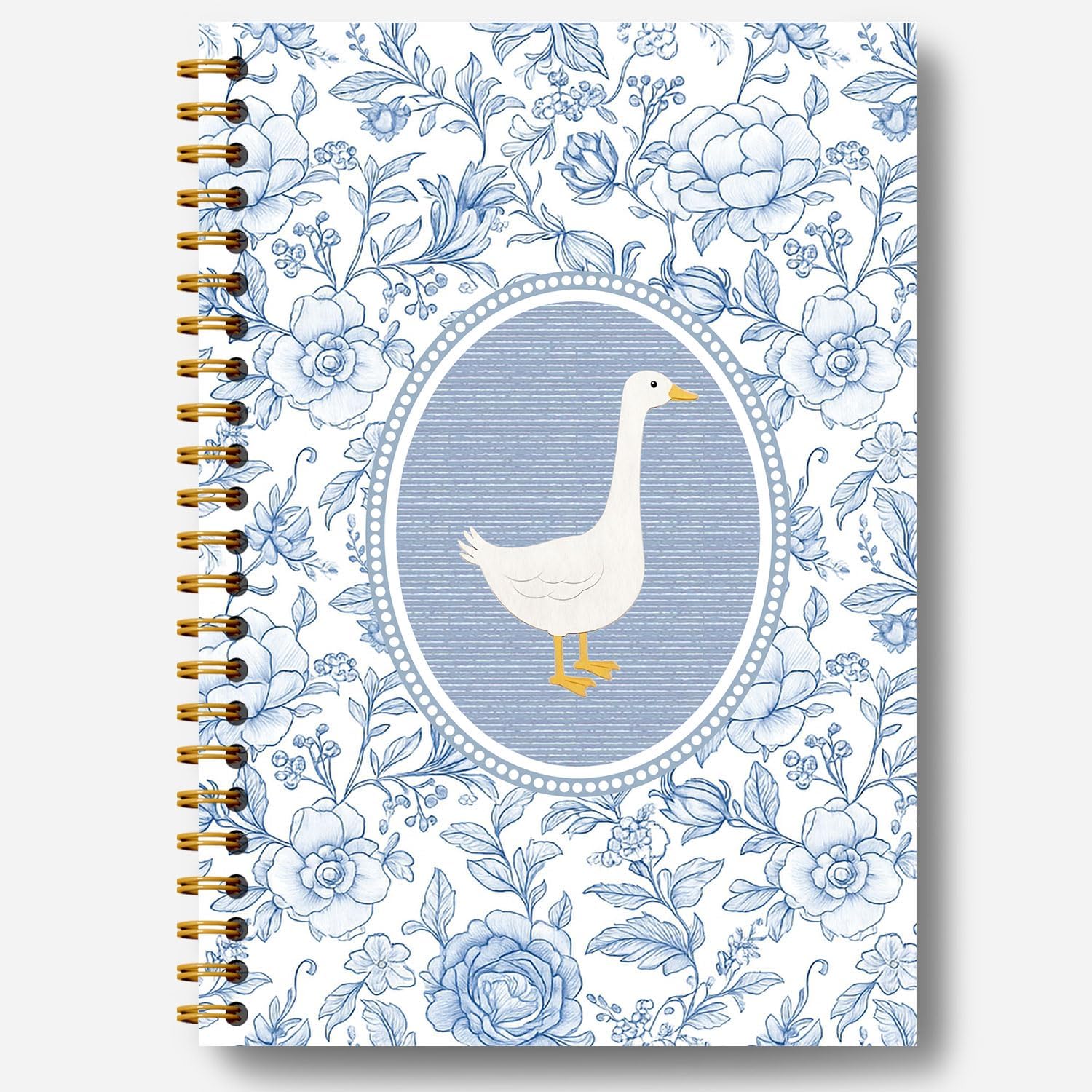 Guymn Chinoiserie Floral Goose Notebook, Goose Animal Lover Gifts Journal for Kids Girls, Blue and White Grandmillennial Geese Hardcover Spiral Notebooks Journals 5.5x8.3 Inch