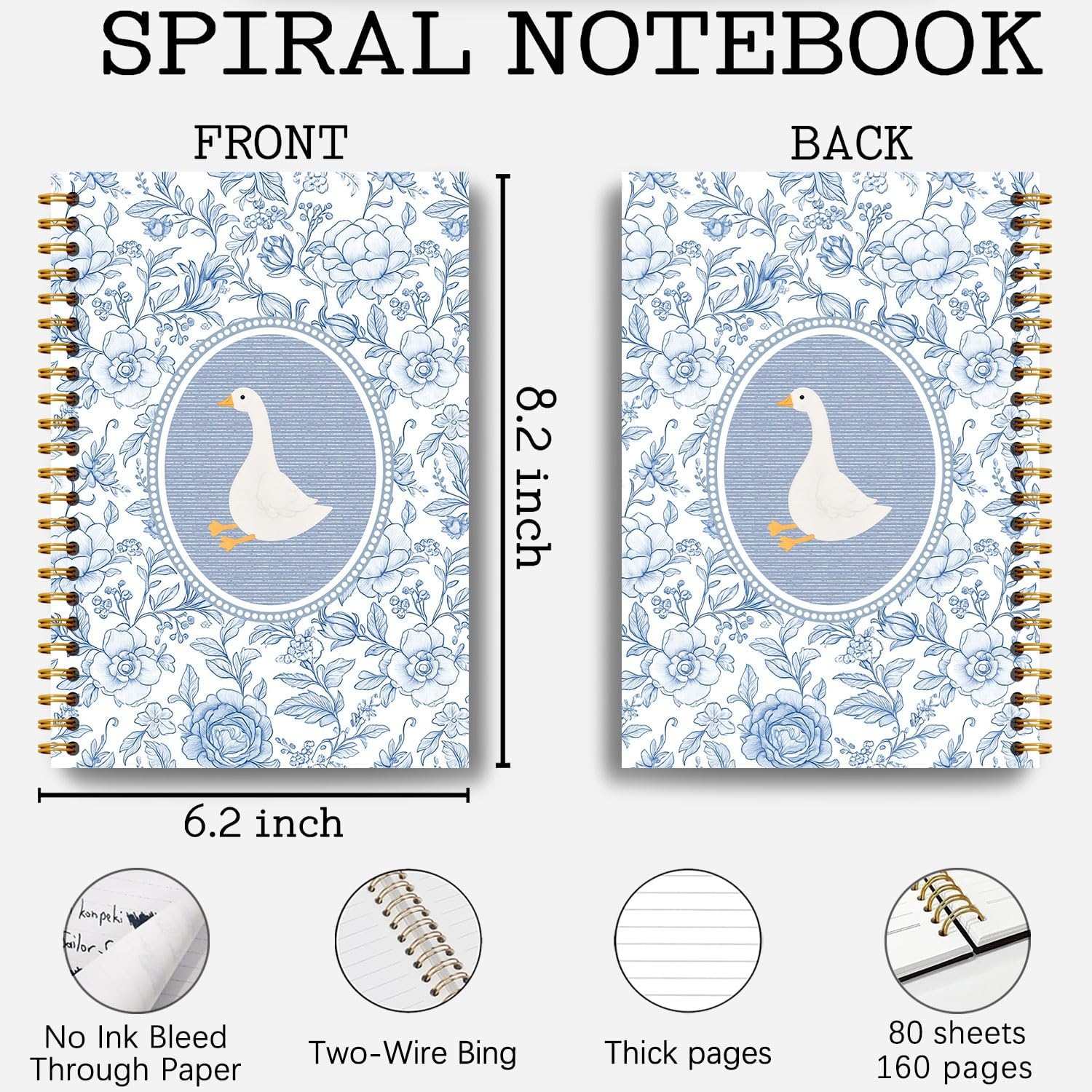 Guymn Blue and White Chinoiserie Goose Notebook, Grandmillennial Floral Goose Journal for Kids Girls, Geese Animal Lover Gifts Hardcover Spiral Notebooks Journals 5.5x8.3 Inch