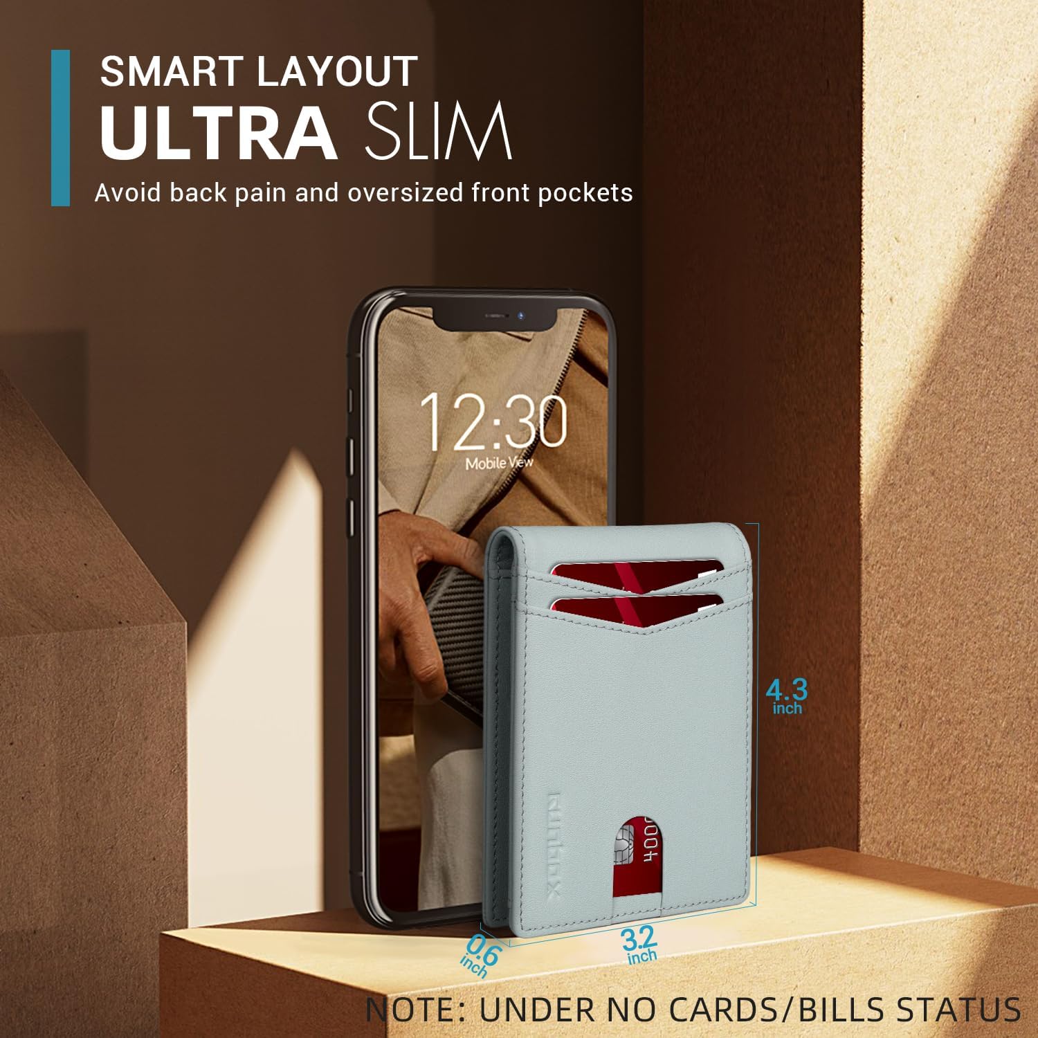 - Slim and thin wallet- This minimalist bifold wallet measures 4.3x3.2x0.6 inches and stores up to 15 cards. The thin wallet perfectly fits in your pocket and is well-suited for everyday carry.