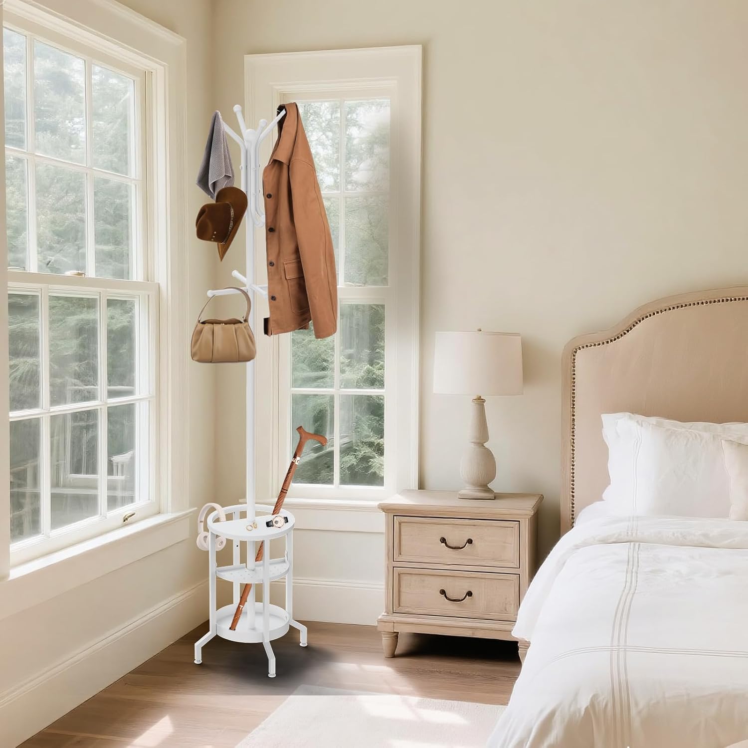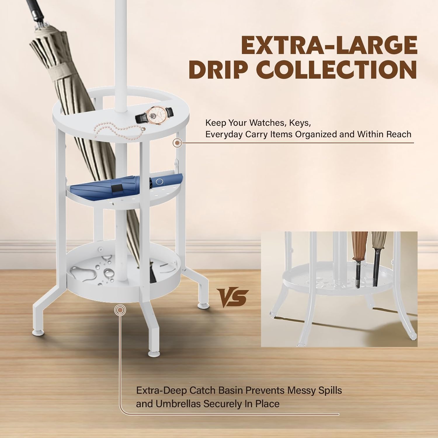 - Coat Rack with Umbrella Holder: Upgraded with an umbrella stand, this coat rack stand can hold both long-handle and folding umbrellas. The heightened bottom tray is designed to protects your floors from rainwater.