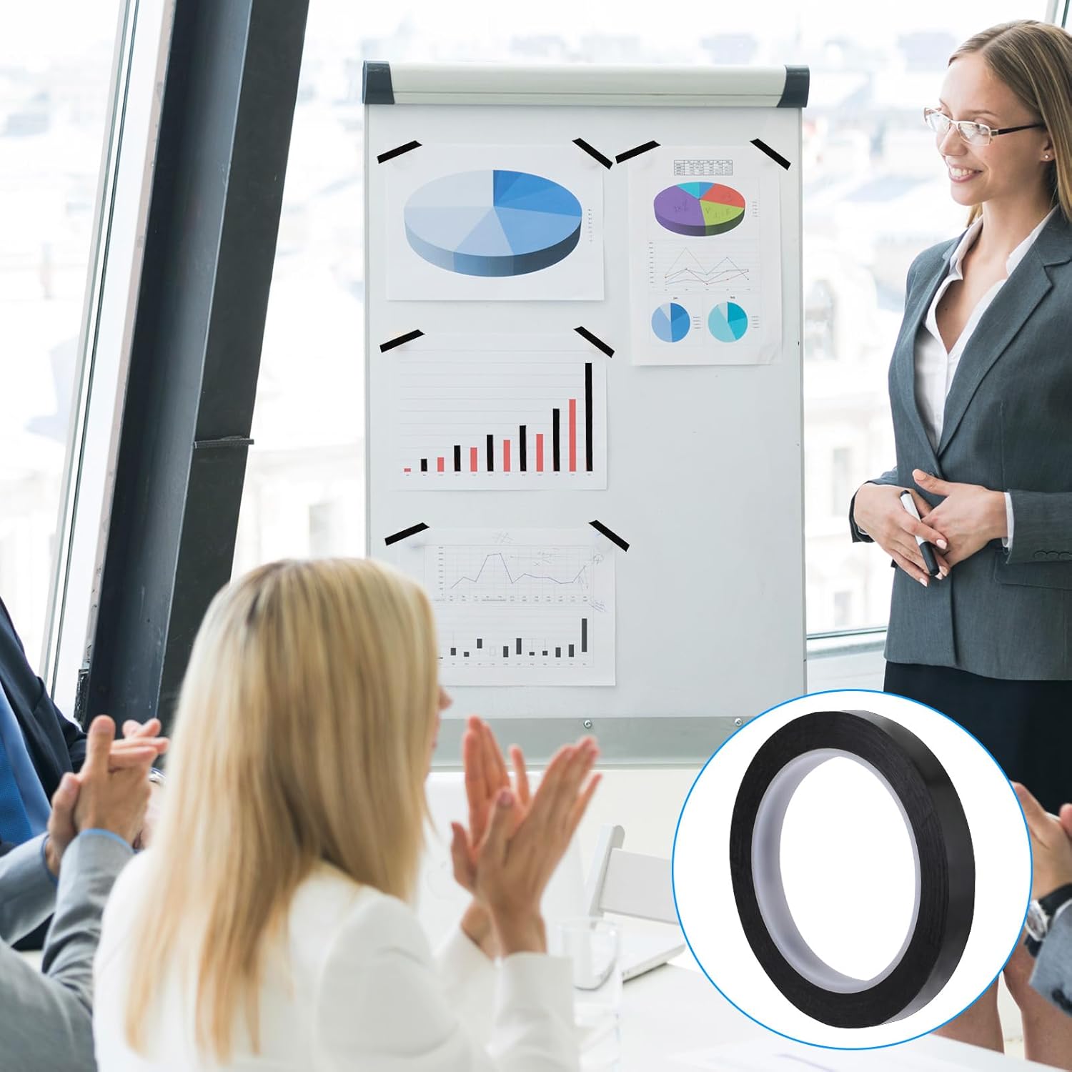 2 PCS Whiteboard Tape, 217 Feet X 1/2 Inch White Board Tape Line Black Graphic Tapes Self Adhesive Chart Line Grid Marking Dry Erase Artist Thin Black Tapes for Dry Erase Board DIY Art