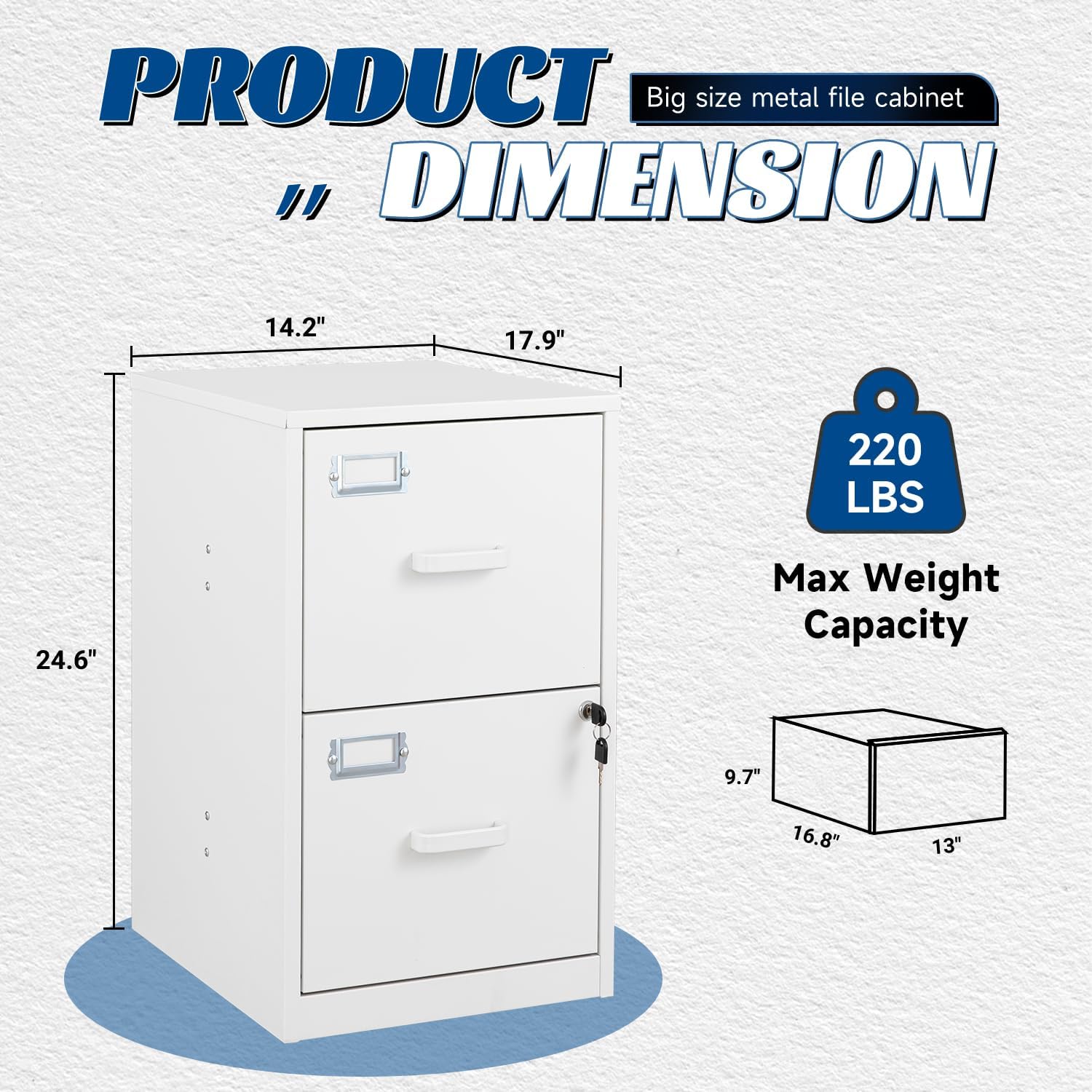 2 Drawers File Cabinet White Metal Vertical Filing Cabinets Metal Lockable Storage Cabinets with Lock for Home Office to Hanging Files