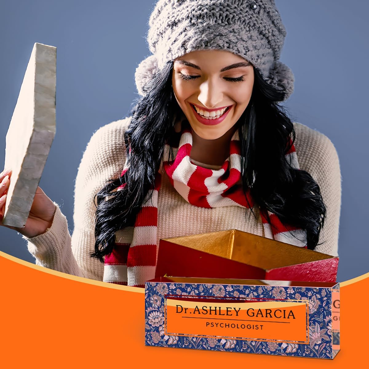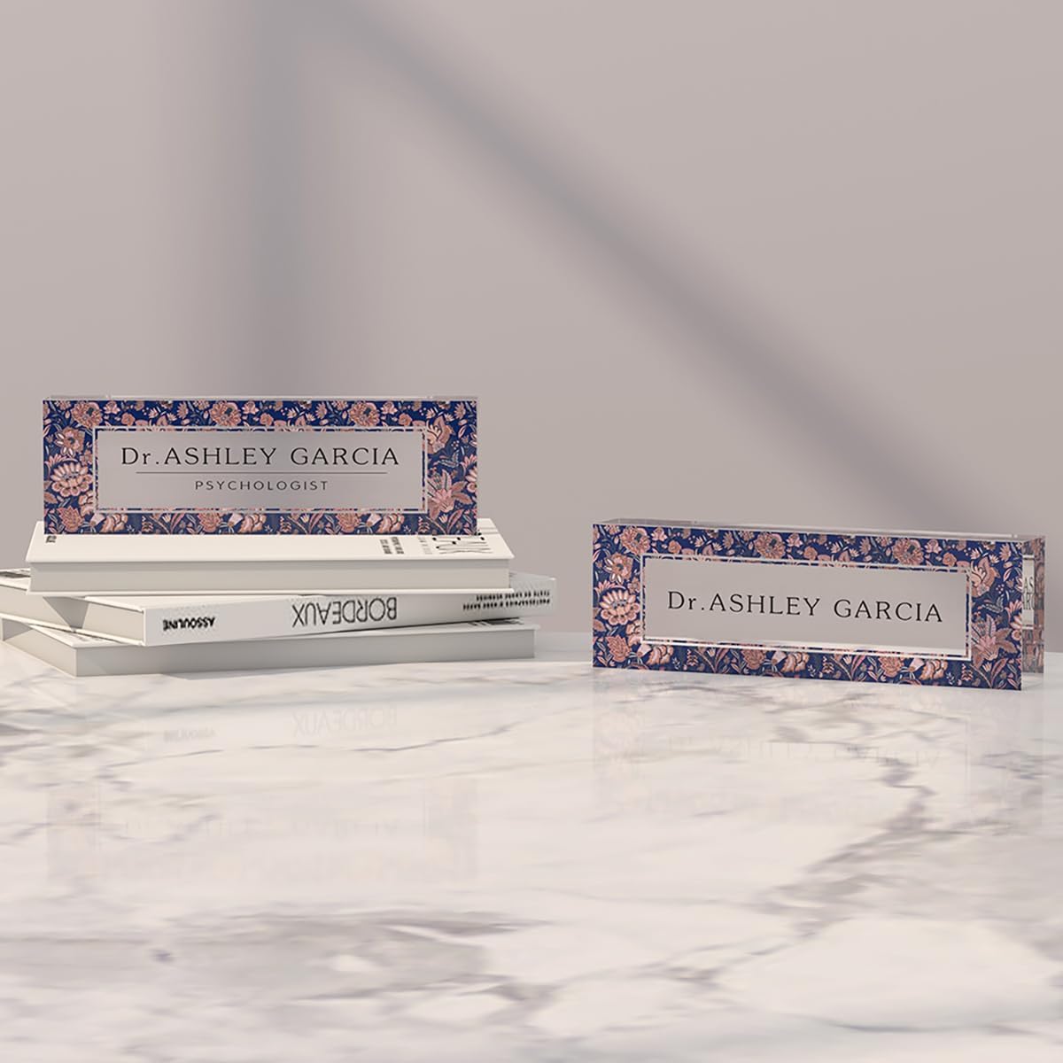 Personalized Office Desk Name Plate on Acrylic Glass - Custom Nameplate Decor, Accessories - Gift for Boss, Coworkers